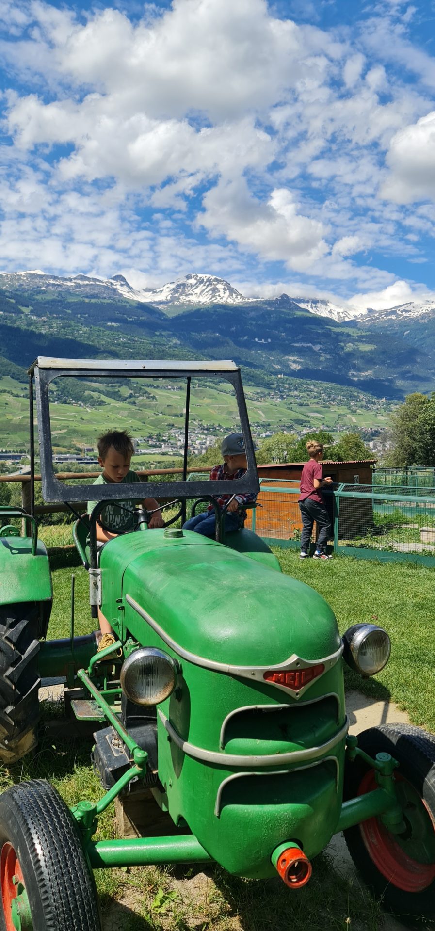 Un Ă©norme tracteur offre un lieu de jeux pour les enfants qui peuvent librement grimper dessus et surtout sâimprĂ©gner de lâambiance de la ferme. Les garçons ont adorĂ© cet engin et offre aussi la possibilitĂ© de faire quelques jolies photos de famille.