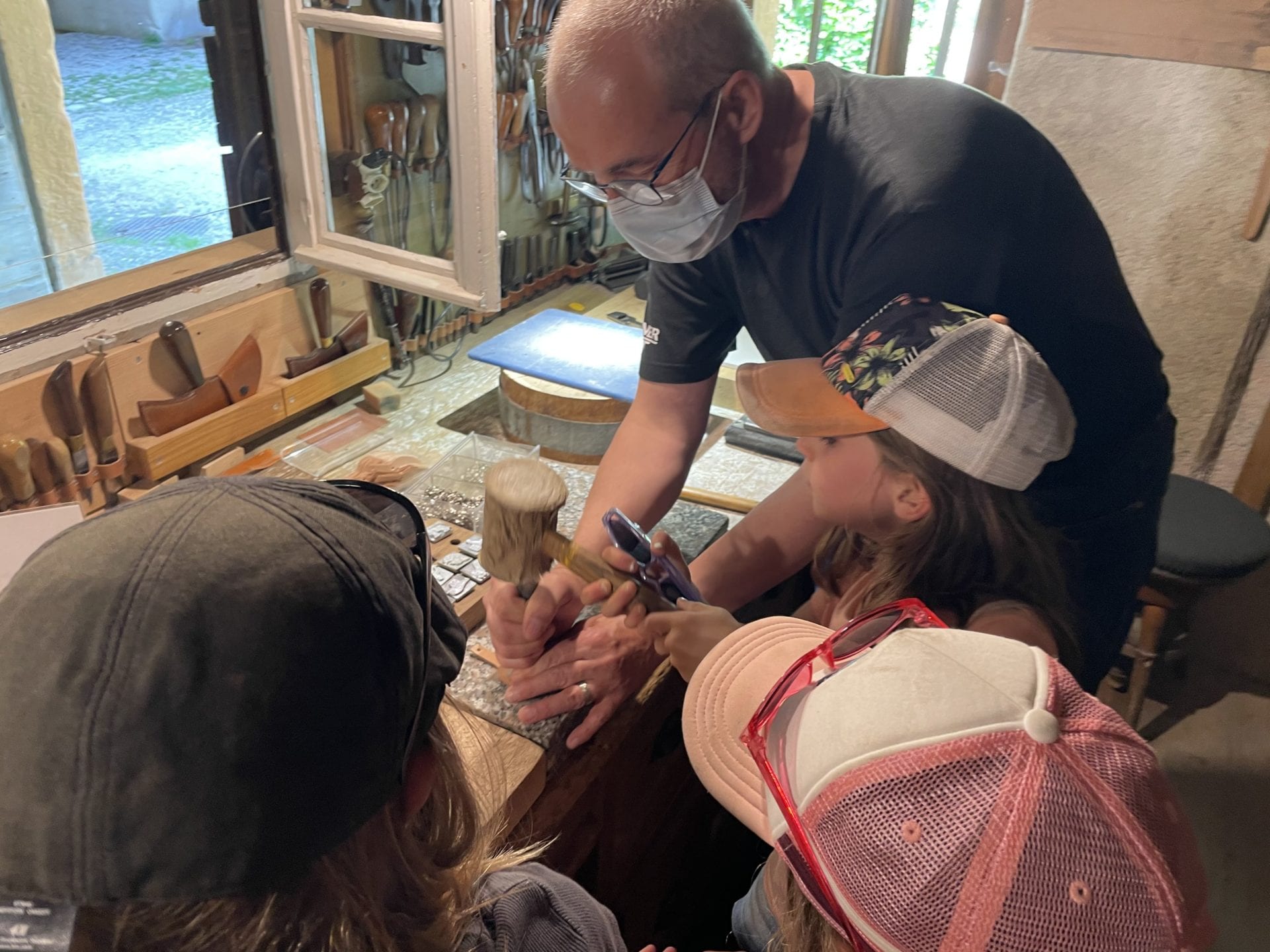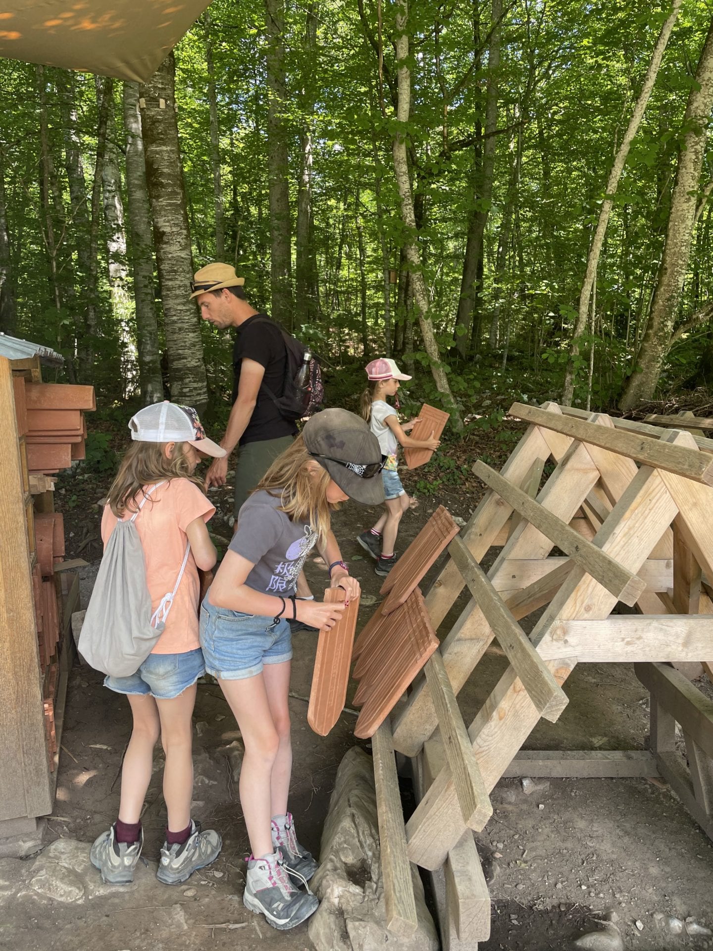 Il y a aussi des lieux oĂč lâon peut sâinitier Ă certains mĂ©tiers en fabricant un objet Ă la maniĂšre des artisans. Les filles ont fabriquĂ© un porte-clĂ© en cuir Ă la sellerie et ont malaxĂ© de lâargile Ă la tuilerie aprĂšs avoir essayĂ© de fabriquer un toit Ă©tanche.