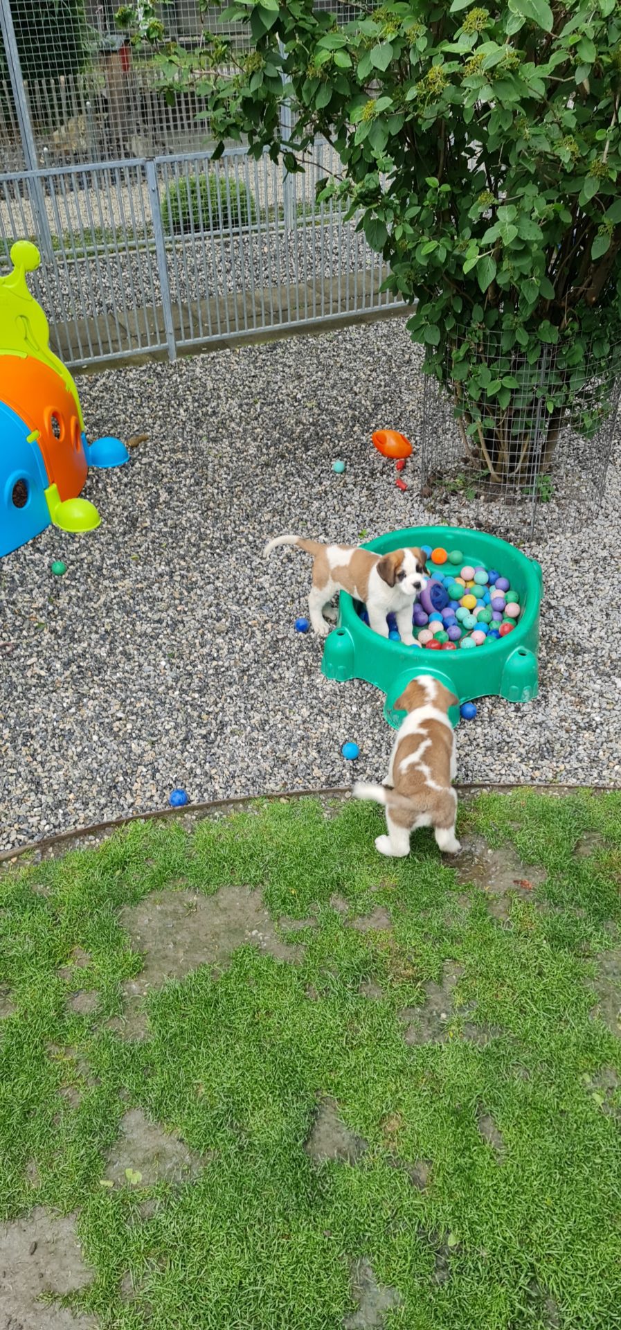 DĂšs notre arrivĂ©e, nous avons dĂ©cidĂ© de commencer par la dĂ©couverte des petits chiots. Les chiens bĂ©nĂ©ficient tous d’un espace Ă  l’intĂ©rieur et d’un parc Ă  l’extĂ©rieur. Il est possible pour les visiteurs de dĂ©ambuler Ă  la rencontre des chiens autant dans l’espace couvert que dans la zone Ă  ciel ouvert. Evidemment pour garantir une certaine tranquilitĂ© et sĂ©curitĂ© aux chiens, il n’est pas possible de les toucher. Une vitre ou une barriĂšre sĂ©pare toujours le public des Saint-Bernard. Par contre, de nombreux panneaux explicatifs permettent de dĂ©couvrir la carte d’identitĂ© des pensionnaires mais aussi les particularitĂ©s de cette race de chiens.