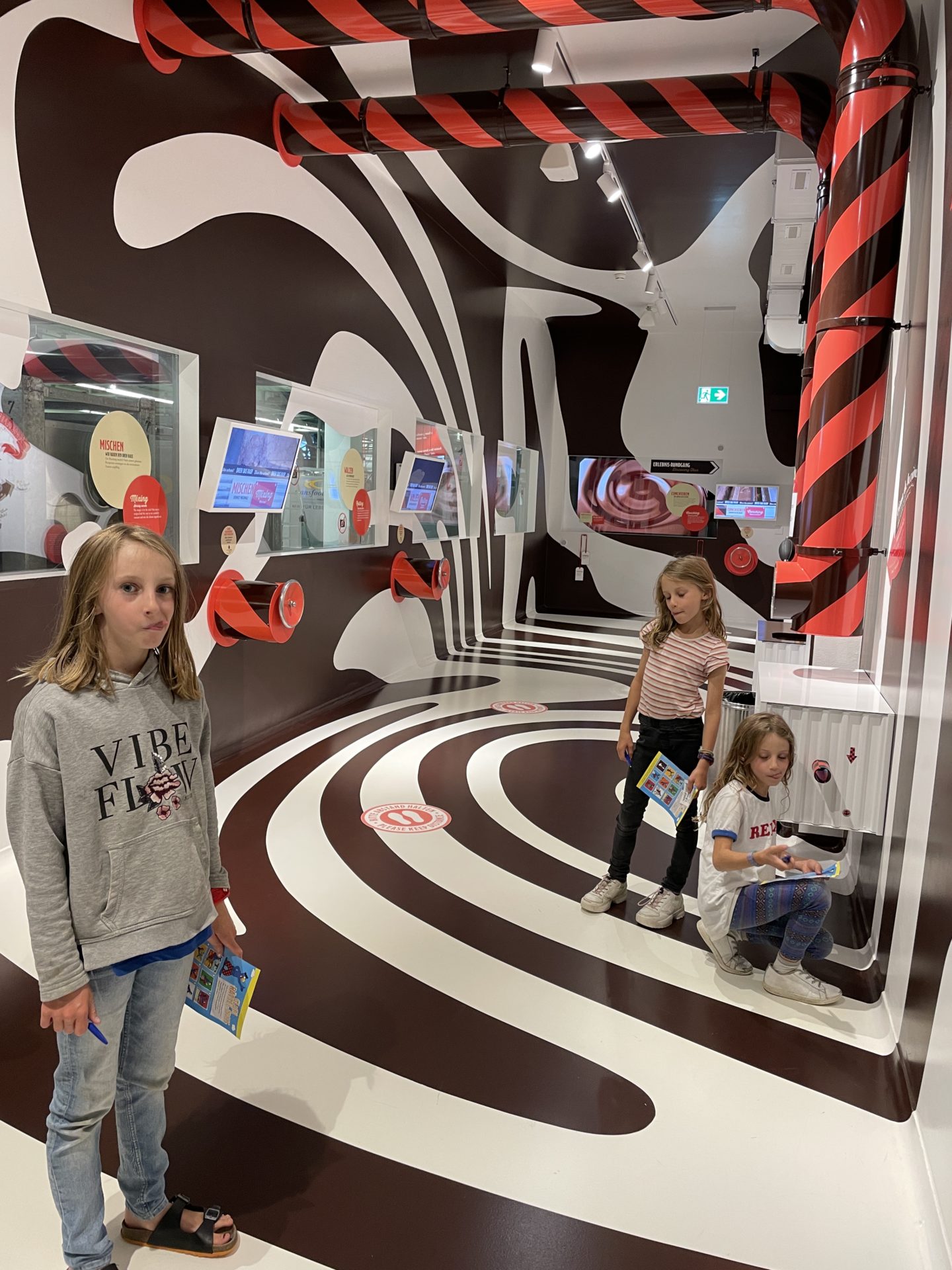 La visite se fait sans guide, c’est un parcours Ă  travers plusieurs salles pour comprendre pourquoi le chocolat nous rend si heureux. Le circuit est en anglais et en allemand. Pour les francophones, on nous distribue une feuille qui nous traduit les diffĂ©rents panneaux des salles. Il y a aussi une application pour la visite, mais lĂ  encore elle n’est disponible qu’en allemand et en anglais.