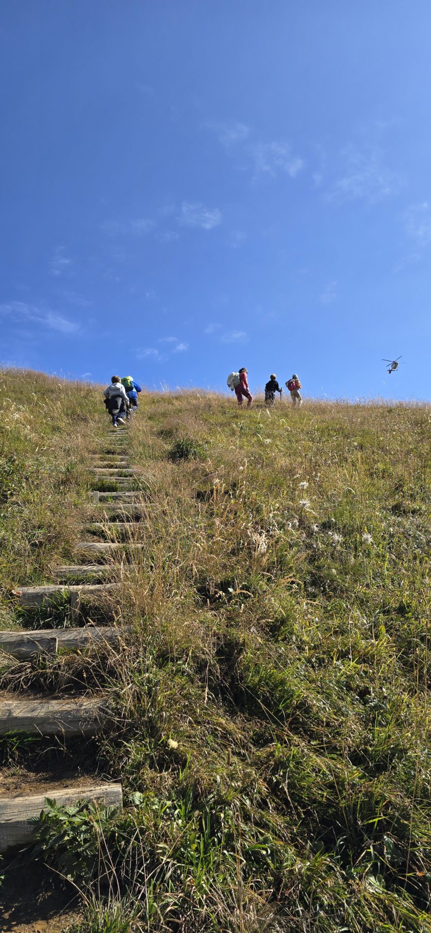 Pour le retour, plusieurs options sont possibles : revenir sur le mĂȘme itinĂ©raire, soit redescendre le chemin escarpĂ© en direction de lâalpage du Petit PrĂ©, ou alors prolonger la balade sur la crĂȘte (direction Grande Garde) puis descendre sur lâalpage dâOdonne puis la station dâOvronnaz. La deuxiĂšme version est bien plus longue. Avec les enfants, on a optĂ© pour le retour en direction du tĂ©lĂ©siĂšge de Jorasse.