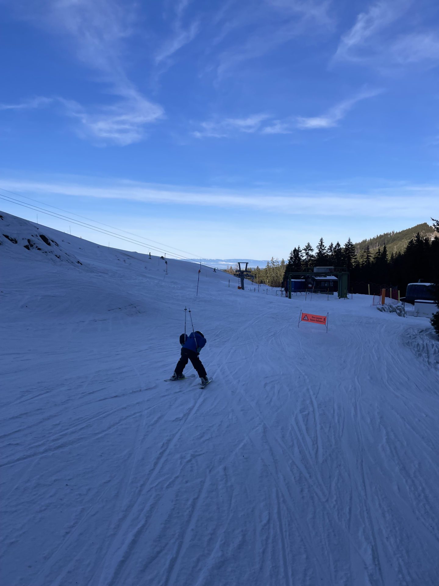 Une fois qu’on maitrise un peu le ski, il est temps de prendre un peu de hauteur. Pour cela, direction le funiculaire. Comme dit prĂ©cĂ©demment, MolĂ©son fait parti des stations Magic-Pass, mais pour ceux qui ne l’ont pas il existe plusieurs forfaits allant de la demi-journĂ©e (4h) Ă 2 jours aux choix sur la saison. Mais revenons Ă notre funiculaire, comme toujours, les enfants apprĂ©cient cette petite montĂ©e. Et une fois en haut, au pied de la montagne, se dresse devant nous le MolĂ©son dans toute sa splendeur. A Plan-Francey vous trouverez Ă©galement un restaurant. Celui-ci est accessible Ă pied ou avec un tĂ©lĂ©corde. Le tĂ©lĂ©corde est Ă©galement utilisĂ© par les dĂ©butants ou les jeunes enfants, permettant une mini-piste de chauffe. Ensuite, en avant. Vous avez le choix entre plusieurs pistes bleues, une rouge et une noire. Depuis l’arrivĂ©e du funiculaire vous pouvez redescendre au dĂ©part de celui-ci en empruntant une piste bleue (mais une bleue tout de mĂȘme relativement compliquĂ©e) ou une piste noire.