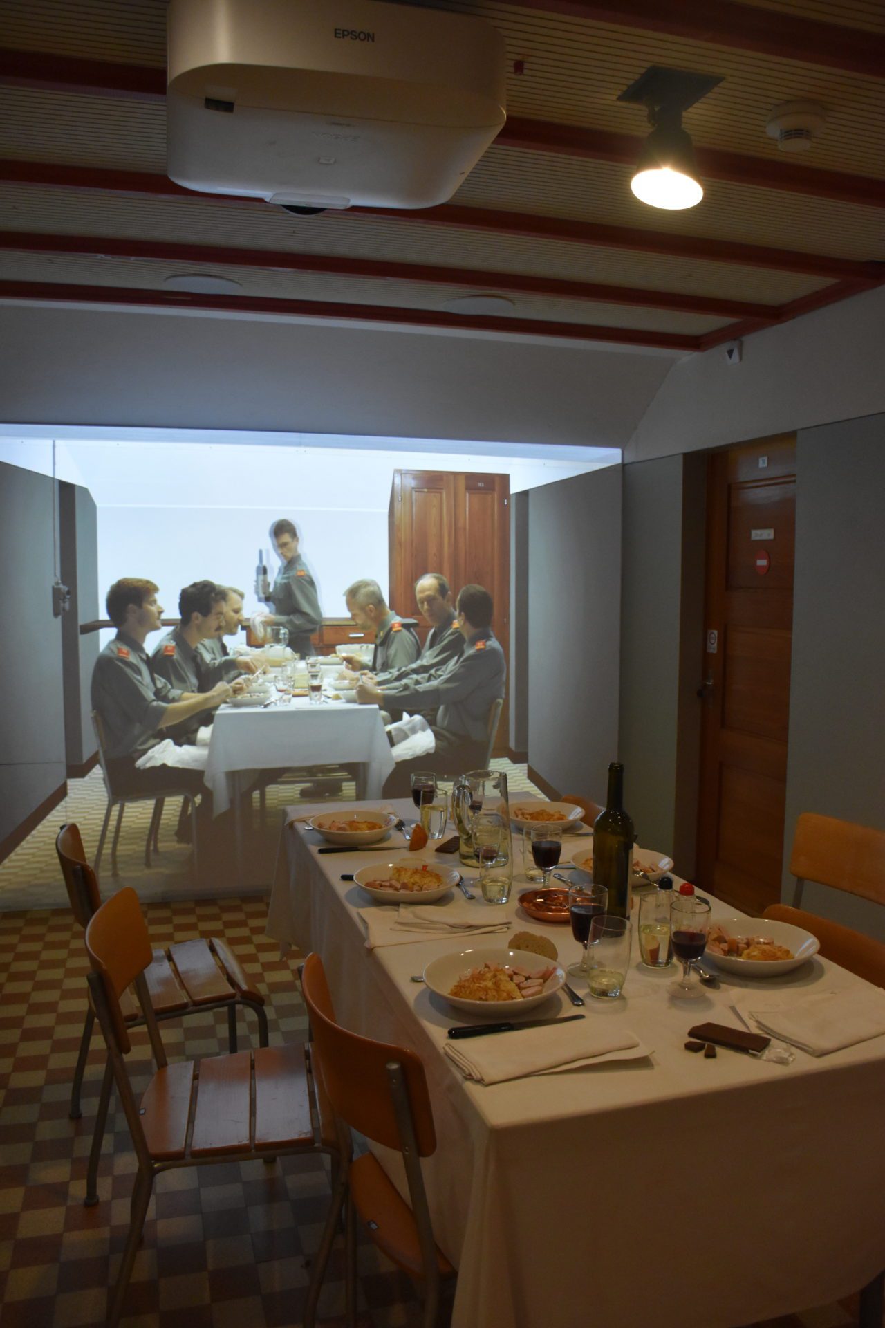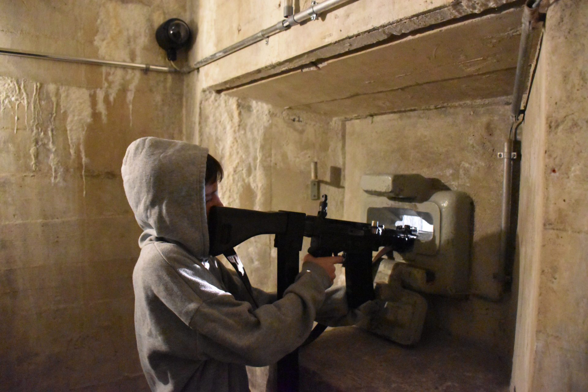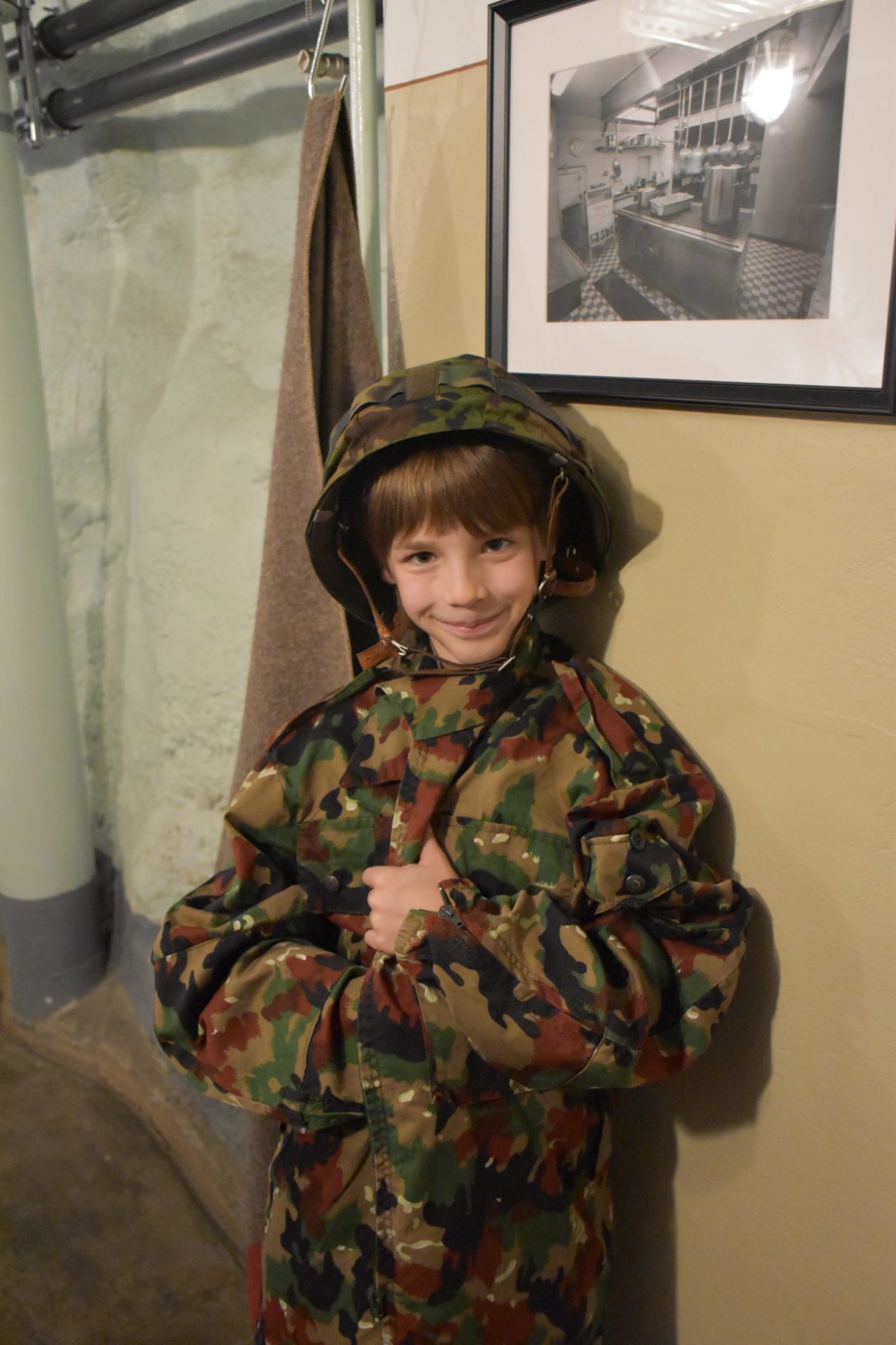 Après avoir pris nos billets nous sommes tout de suite plongés dans l’ambiance. Après un tunnel nous rejoignons un accueil où le plan et les explications de la visite nous sont donnés. La visite se déroule en suivant les chiffres du plan, tout est bien indiqué et dans chaque salle vous trouvez un tas d’explications. Le Fort fait plus de 2000 m2, il y a donc énormément d’éléments à découvrir. Mais le plus fun pour les enfants (et oui avouons aussi pour les parents) est de pouvoir tester, toucher et manipuler un grand nombre d’objets. Cette visite se veut vraiment immersive, les décors sont complètement réalistes et dans plusieurs salles il y a également des scènes filmées et projetées sur un mur avec du son. On est vraiment pris dans l’histoire de la vie du quotidien des soldats du Fort de Chillon.