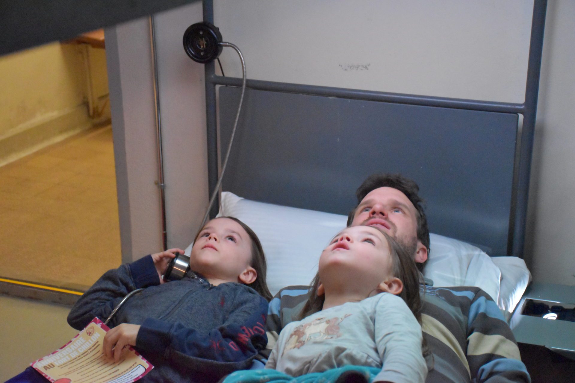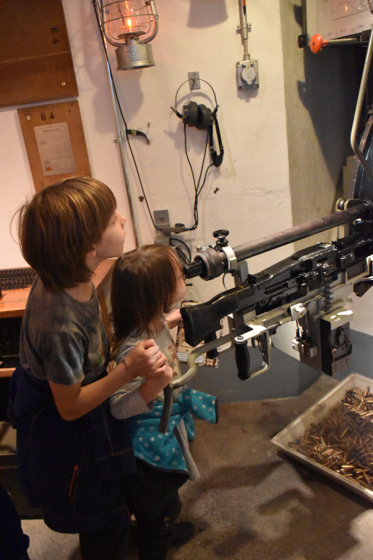 Nous avons passé un bon moment dans chacune des salles, afin de lire les explications mais nous avons aussi pris le temps d’observer, de toucher et de tester. Les Lutins ont eu par exemple beaucoup de plaisir à manipuler la mitrailleuse. Pour ma part j’ai beaucoup aimé la salle d’opération et l’infirmerie (déformation professionnelle sans doute!). Nous avons parcouru l’ensemble du Fort avec un immense intérêt. Mon mari et moi avons également apprécié le documentaire sur le « réduit national », un enjeu dont je n’avais pas du tout conscience. Dans les dernières salles se trouvent une salle plus technologique. Il y a notamment la possibilité d’essayer de la réalité virtuelle, chose dont les enfants ne se sont pas fait prier pour tester. Mais il y a également plusieurs quizz et jeux de type « bataille navale »sur écran.
