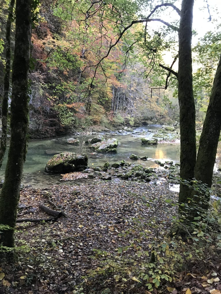 Nous sommes à la fin du mois d’octobre. Il fait un temps magnifique et c’est mon anniversaire! Le choix de l’activité du jour me revient et je choisis une randonnée dans les Gorges de l’Orbe avec un parcours adapté aux enfants. Cette balade a la particularité d’avoir plusieurs curiosités le long du parcours. J’emmène donc enfants et mari pour partir à la découverte!