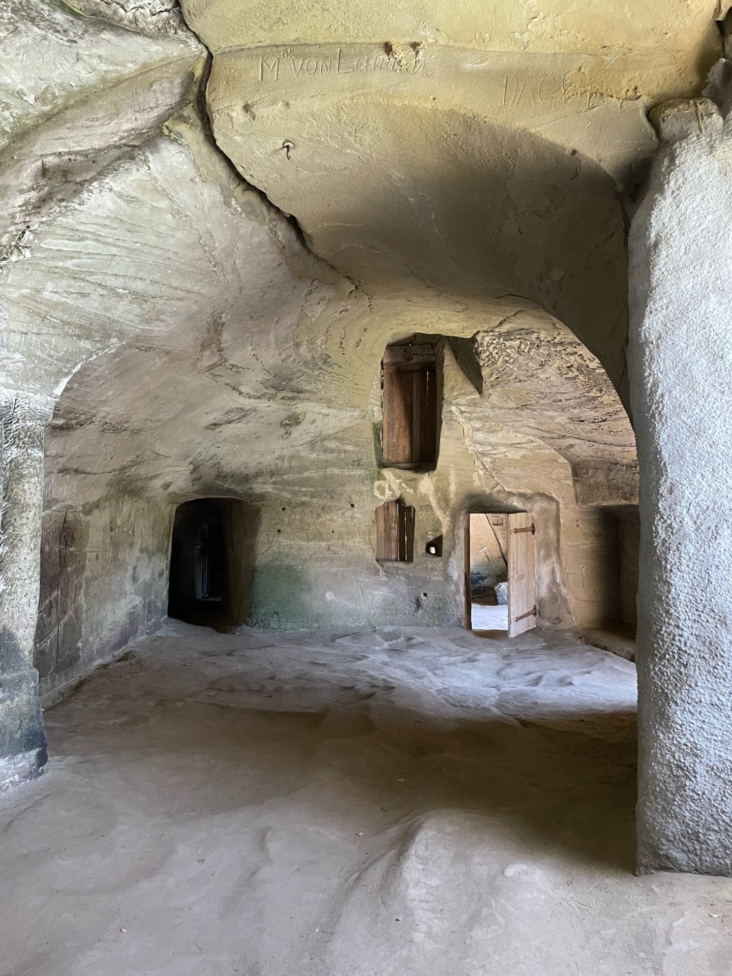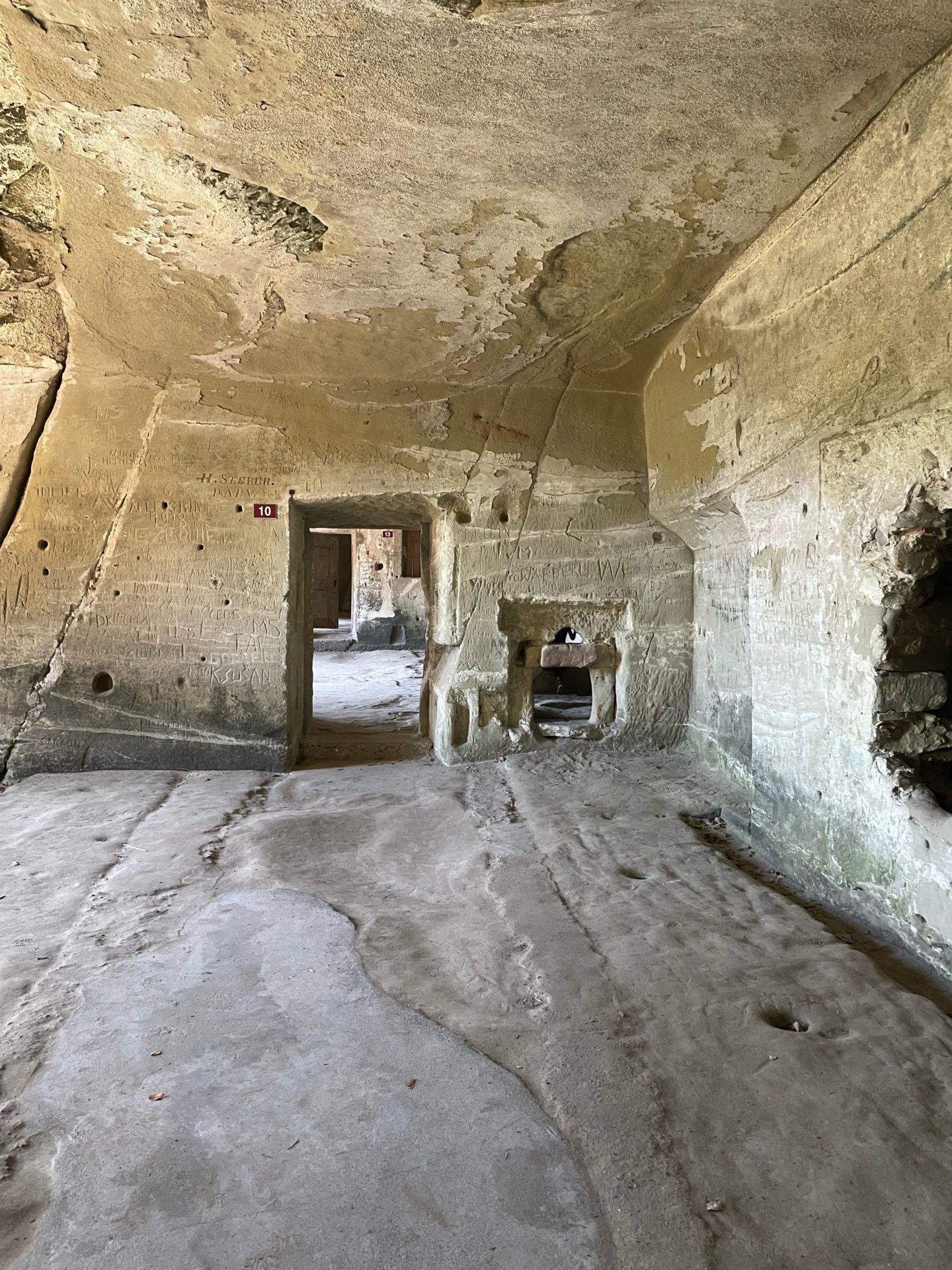 Nous avons arpentĂ© les piĂšces fraiches et remplies dâhistoire, le sol, en molasse, fait penser aux dunes de sables dâune mer passĂ©e.