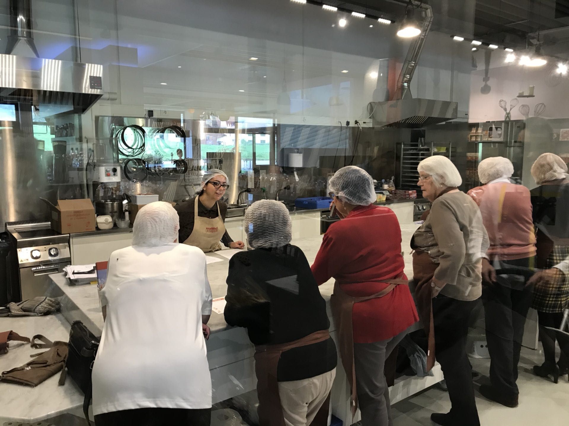 En redescendant au « magasin producteur« , nous avons pu observer un cours de pâtisserie où 6 personnes apprenaient à cuisiner un assortiment de flûtes feuilletées sucrées et palmiers.
