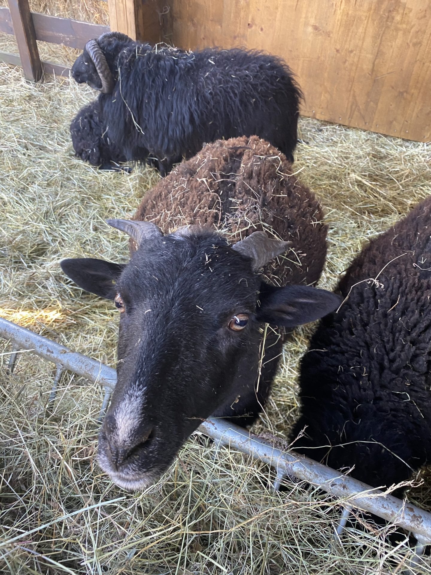 Nous commençons notre visite en saluant les lapins. Puis, nous passons par l’enclos des moutons d’Ouessant qui, loin d’ĂȘtre farouches, passent leur tĂȘte entre les planches de leur barriĂšre pour rĂ©clamer des caresses.
