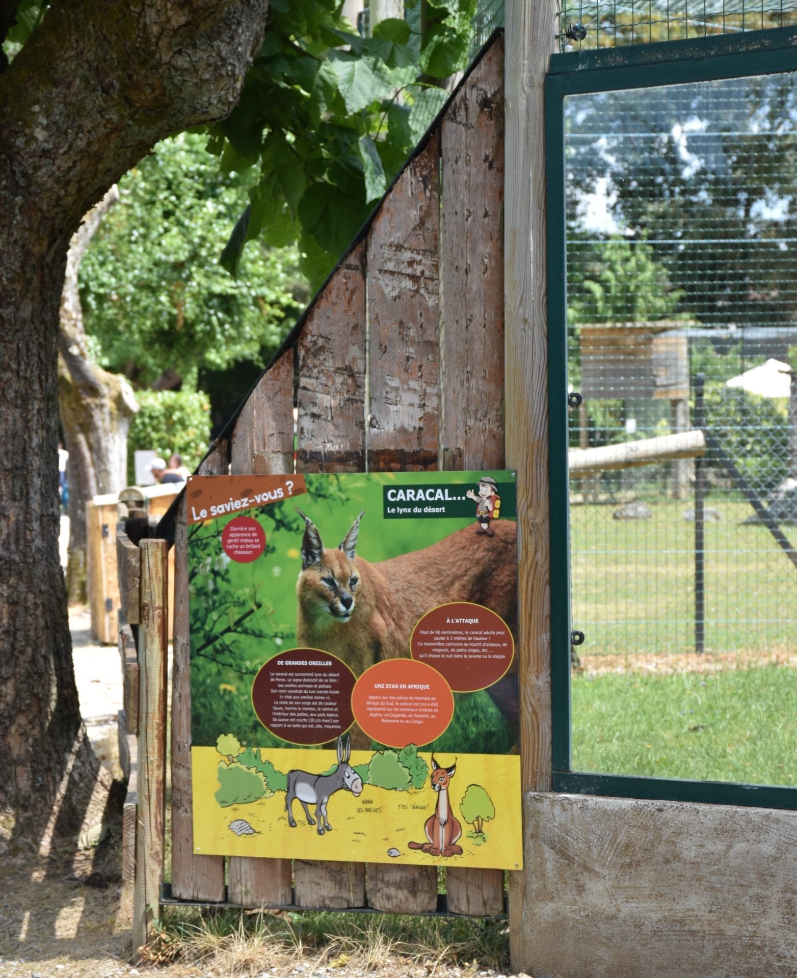 Des panneaux explicatifs se trouvent devant les enclos et certains sont prĂ©sentĂ©s de maniĂšres ludiques et pĂ©dagogiques. Avec des jolies photos et des couleurs ce qui a le mĂ©rite dâinterpeller les enfants. Il y a aussi la possibilitĂ© de faire un « safari quizz », câest un jeu de piste avec des indices pour trouver Ă la fin le nom dâun animal. Nous ne lâavons pas fait, mais avons repĂ©rĂ© plusieurs panneaux dâindices.