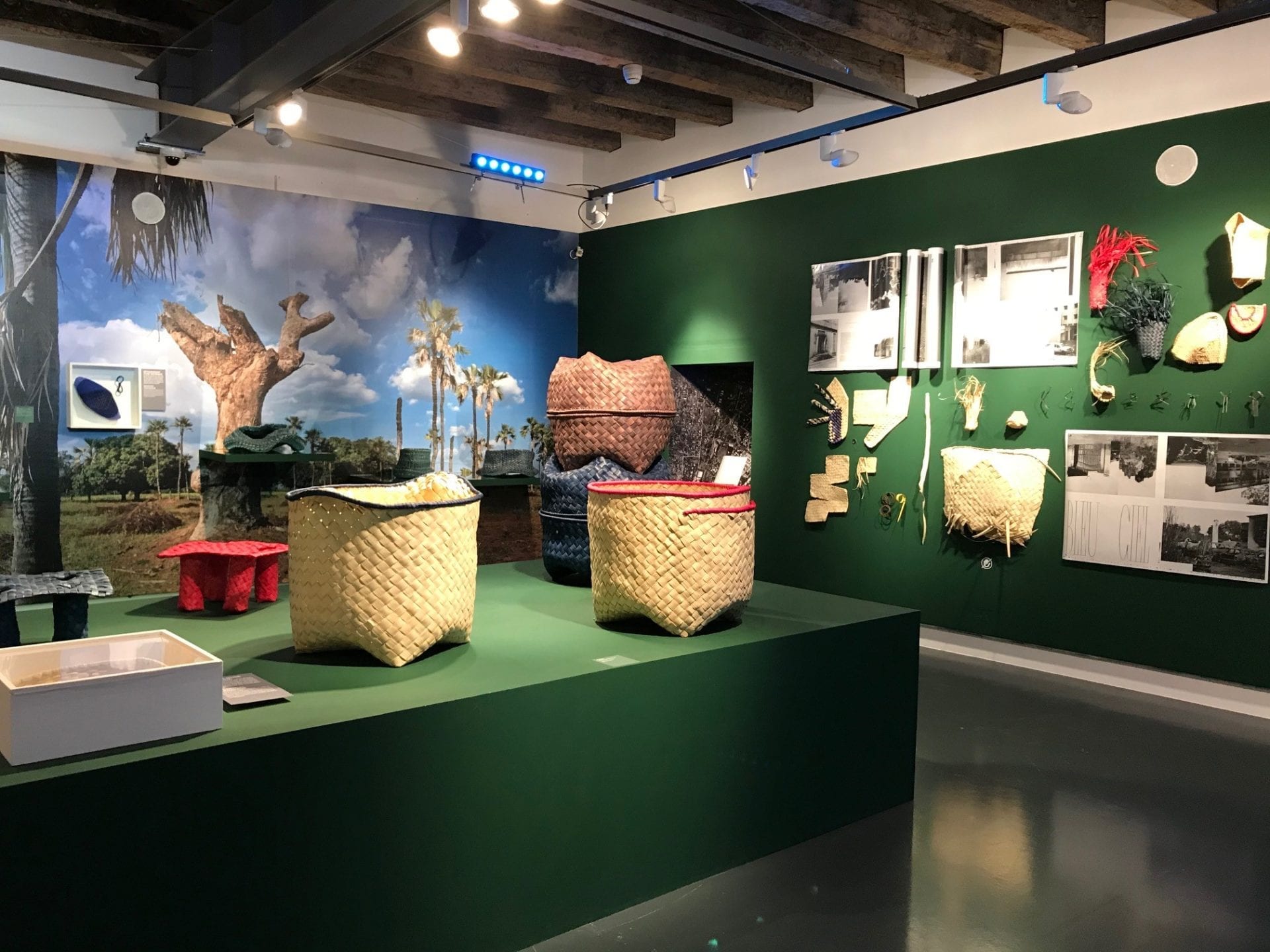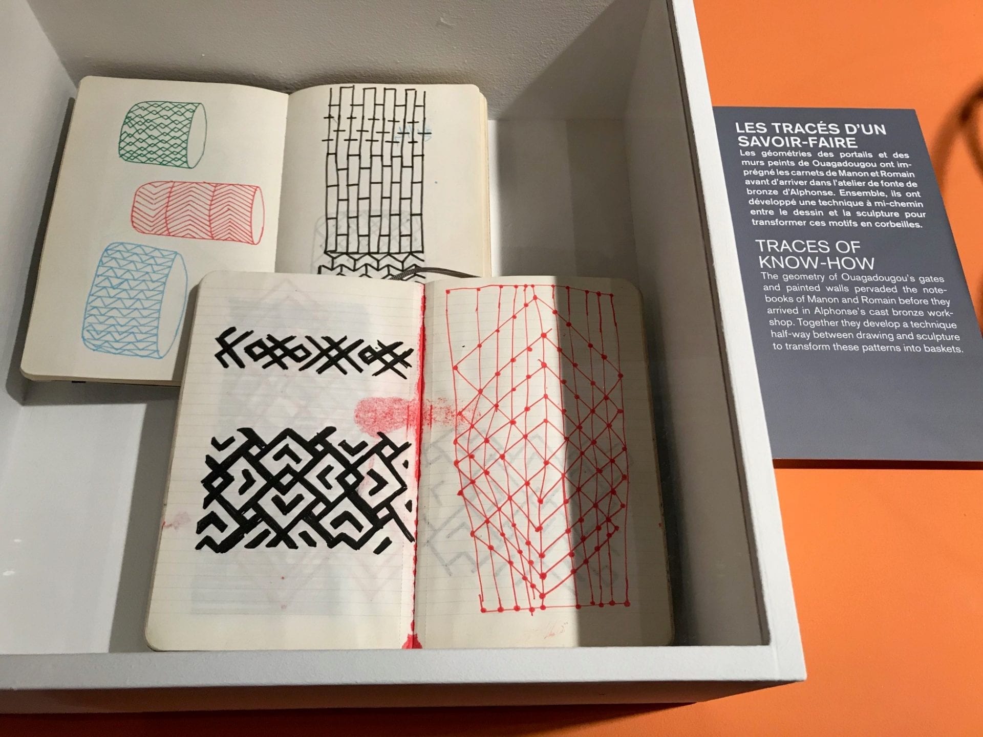 On peut suivre facilement le processus de création grâce aux carnets de notes, aux échantillons, aux photos et vidéos qui sont présentés. On découvre d’où est venue l’inspiration : des statuettes en bronze qui deviennent des saladiers, des sacs tressés qui se transforment en étagères.