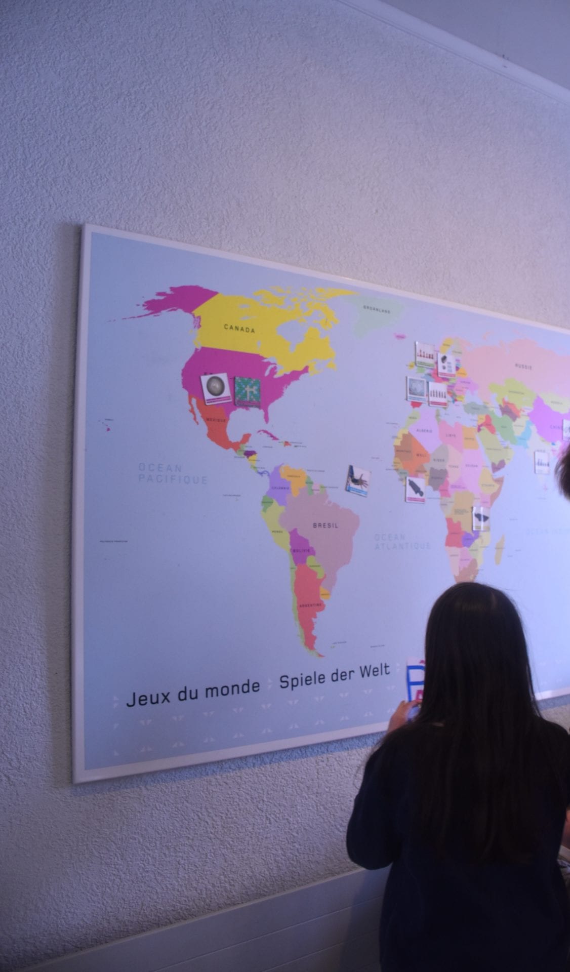 La grande carte magnétique sur laquelle les enfants doivent replacer les jeux dans les bons pays a connu un super succÚs auprÚs de nos Lutins.