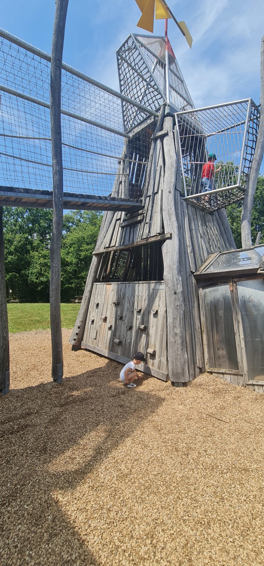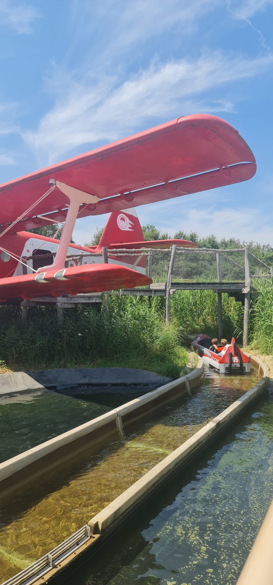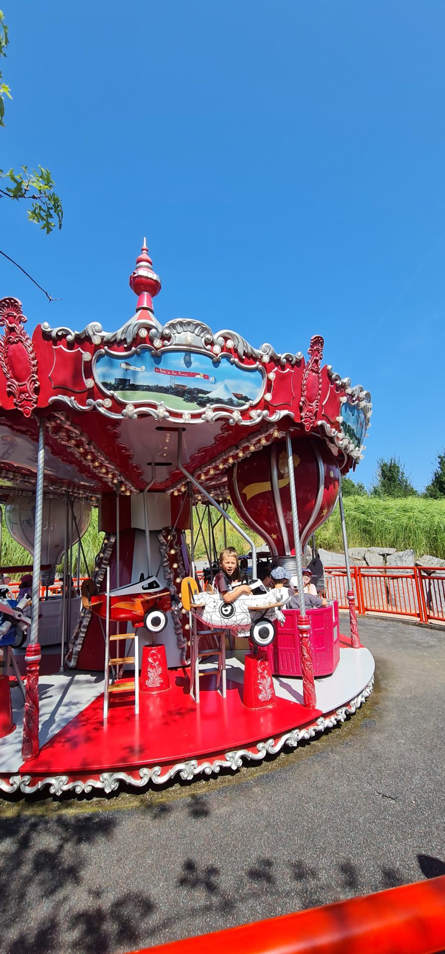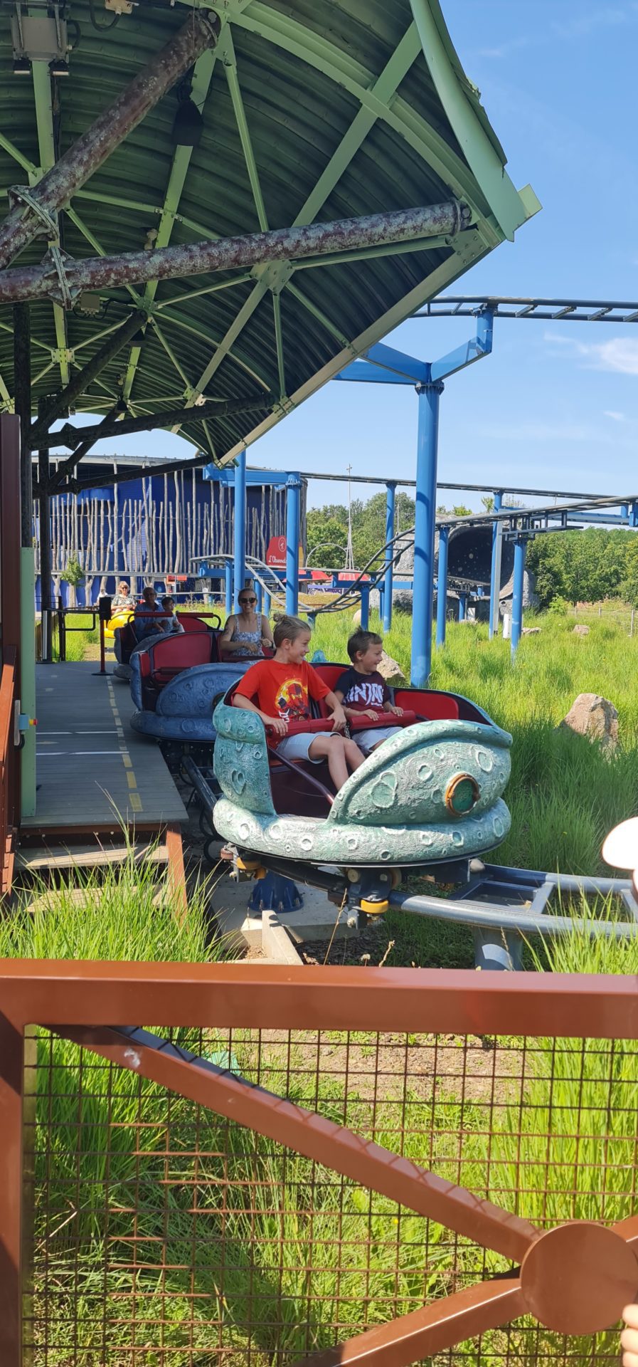 Le parc propose Ă©galement quelques manĂšges « Ă  sensation » mais qui restent trĂšs doux et vraiment adaptĂ©s pour les enfants. Nous avons adorĂ© les chaises volantes mĂȘme si dĂšs les premiers tours mon estomac n’était pas forcĂ©ment du mĂȘme avis ! Un train rapide avec une grande tĂȘte de serpent a aussi envoĂ»tĂ© les garçons, le tour Ă©tait vraiment express mais c’était une petite montĂ©e d’adrĂ©naline pour toute la famille et c’était un moment trĂšs sympa. Autre manĂšge phare de ce genre de parcs familiaux, celui que l’on surnomme « les bĂ»ches » a eu beaucoup de succĂšs. « L’Atlantique Sud » – de son vrai nom – et sa chute vertigineuse de 10m trĂŽne au milieu du parc, juste en face du restaurant. Les garçons ont pu y aller seuls pendant qu’on terminait notre repas ( car ils mesurent tous les deux plus de 120cm). Quelle fiertĂ© pour eux de faire cette attraction, sans les parents ! Ils auraient pu y passer la journĂ©e !