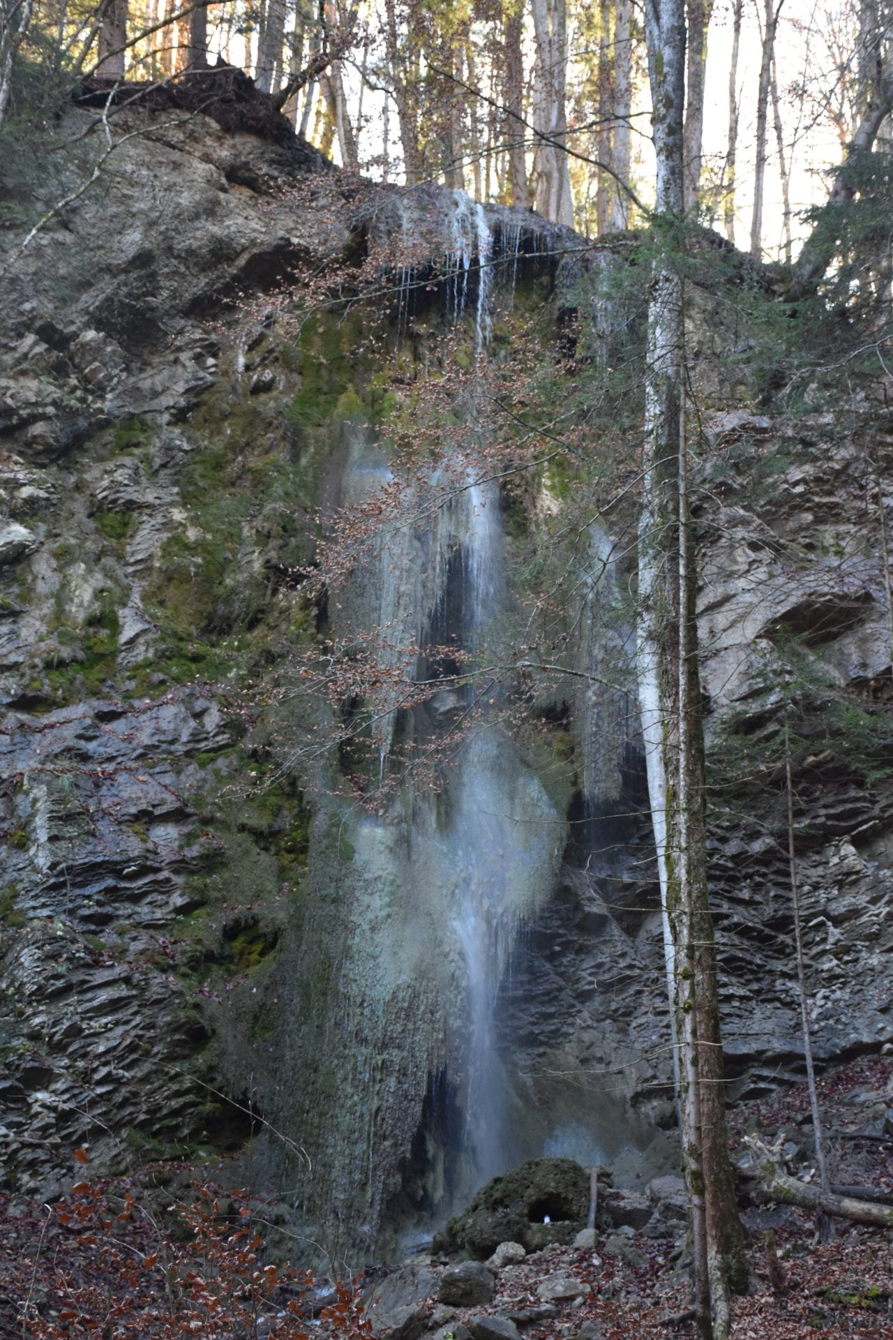 Nous empruntons, dans un premier temps, un large sentier forestier au bord duquel coule paisiblement la Jogne. Sur ce sentier se trouve une première curiosité que nos Lutins apprécient beaucoup. La cascade !