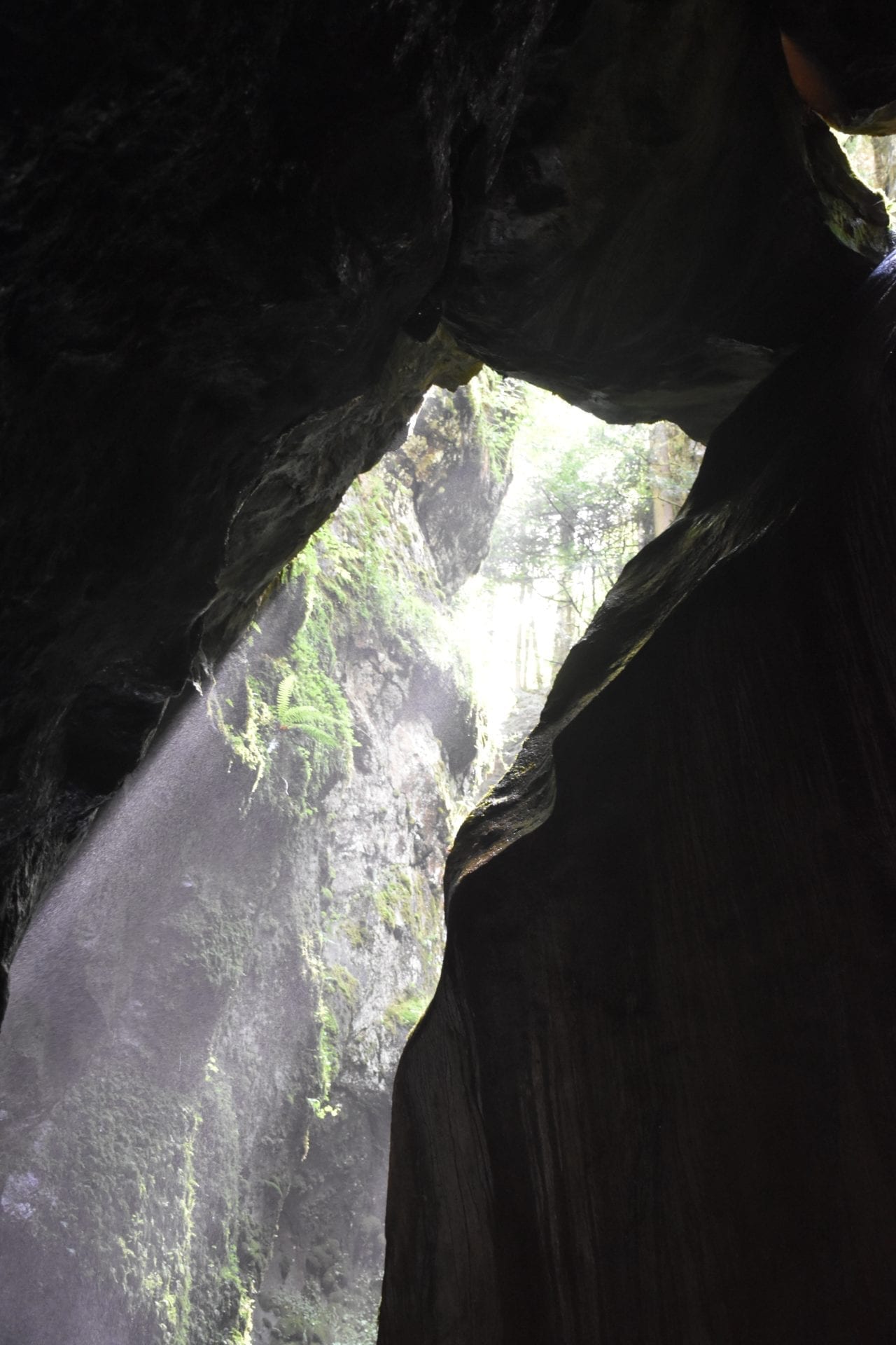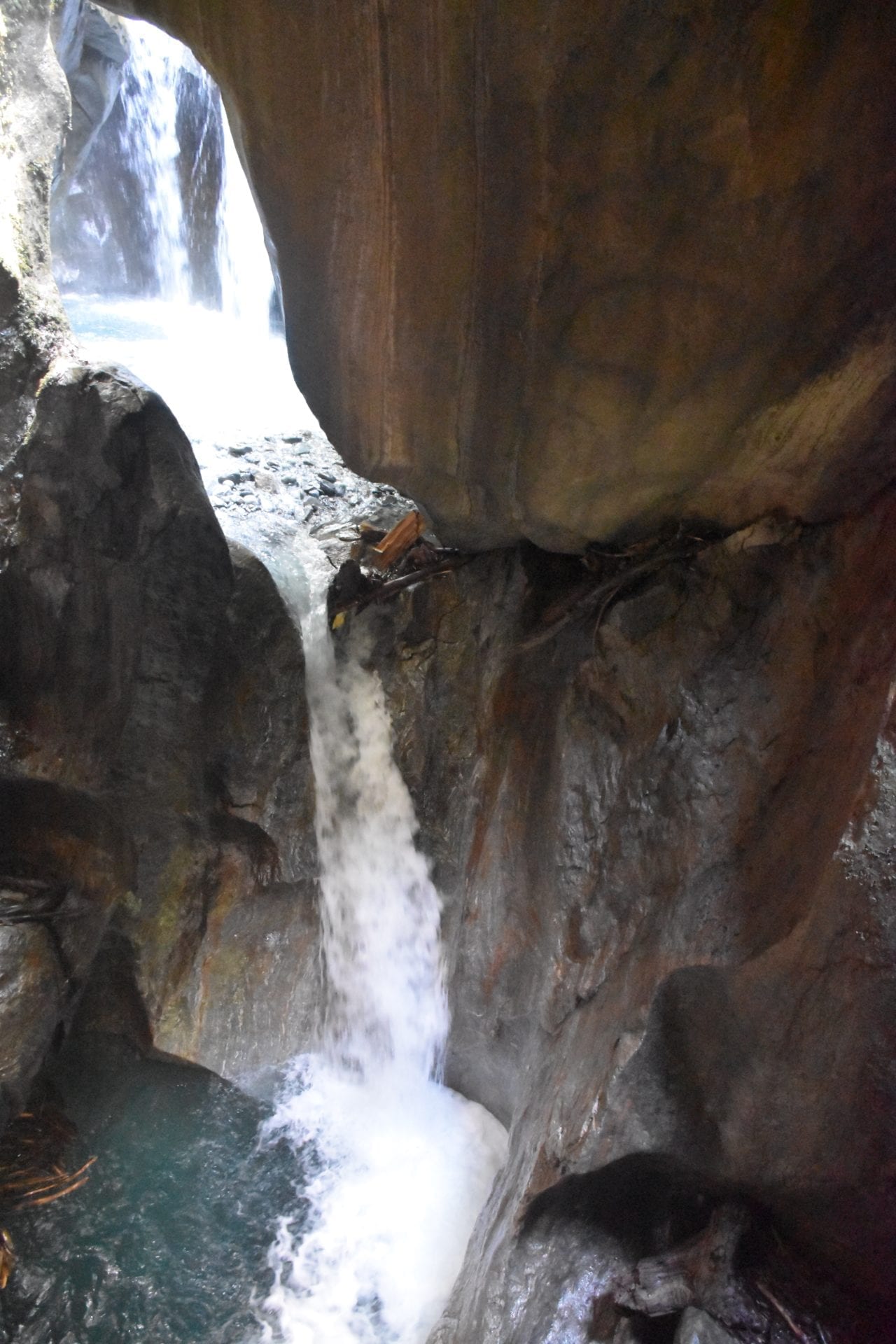 Il y a un accĂšs pour se rendre Ă lâintĂ©rieur de la grotte. Nous sommes donc Ă©videmment descendus pour admirer cette merveille de la nature. LâintĂ©rieur est splendide et le spectacle saisissant. Deux cascades se superposent face Ă nous et on se sent bien petits devant cette eau torrentielle alors que nous nous trouvons en dessous dâĂ©normes rochers.