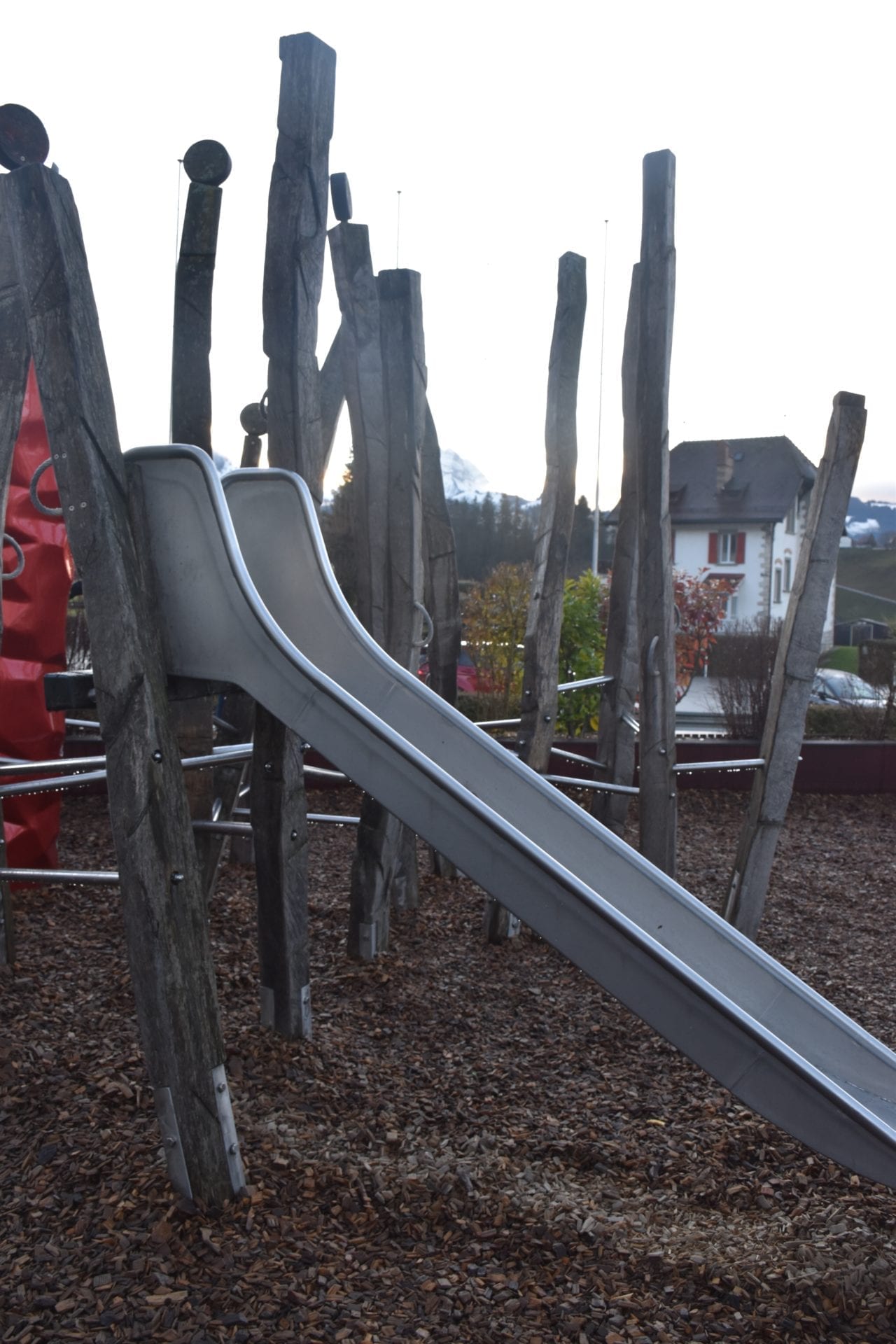 La place de jeux extérieure permet aux plus jeunes de se défouler aprÚs avoir englouti plein de chocolat.