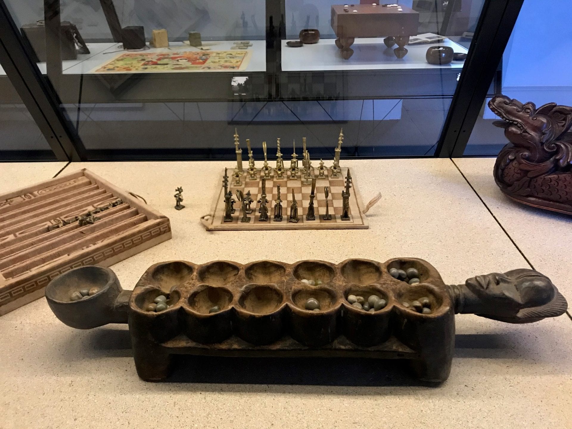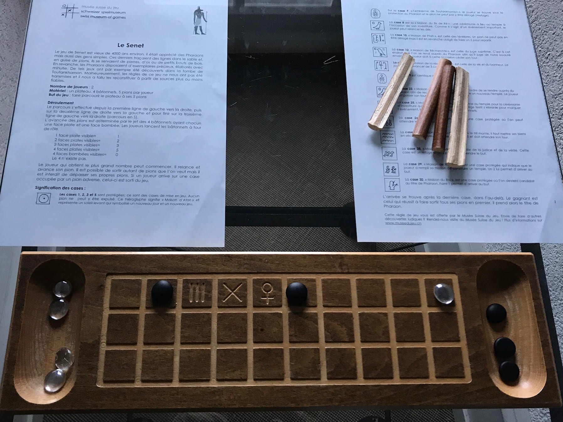C’est surtout un musĂ©e oĂč on prend le temps de s’amuser car, dans chaque recoin, un jeu est Ă disposition du public. On s’est initiĂ© au Senet, un genre de jeu des Ă©chelles vieux de 4000 ans. AprĂšs s’ĂȘtre familiarisĂ©s avec les rĂšgles, nous avons passĂ© un trĂšs bon moment Ă avancer sur le plateau, non pas en lançant des dĂ©s, mais en lançant des bĂątons de bois. Puis dans la piĂšce suivante, un Ă©chiquier nous attendait. Nous n’avons donc pas pu nous empĂȘcher d’entamer une partie.