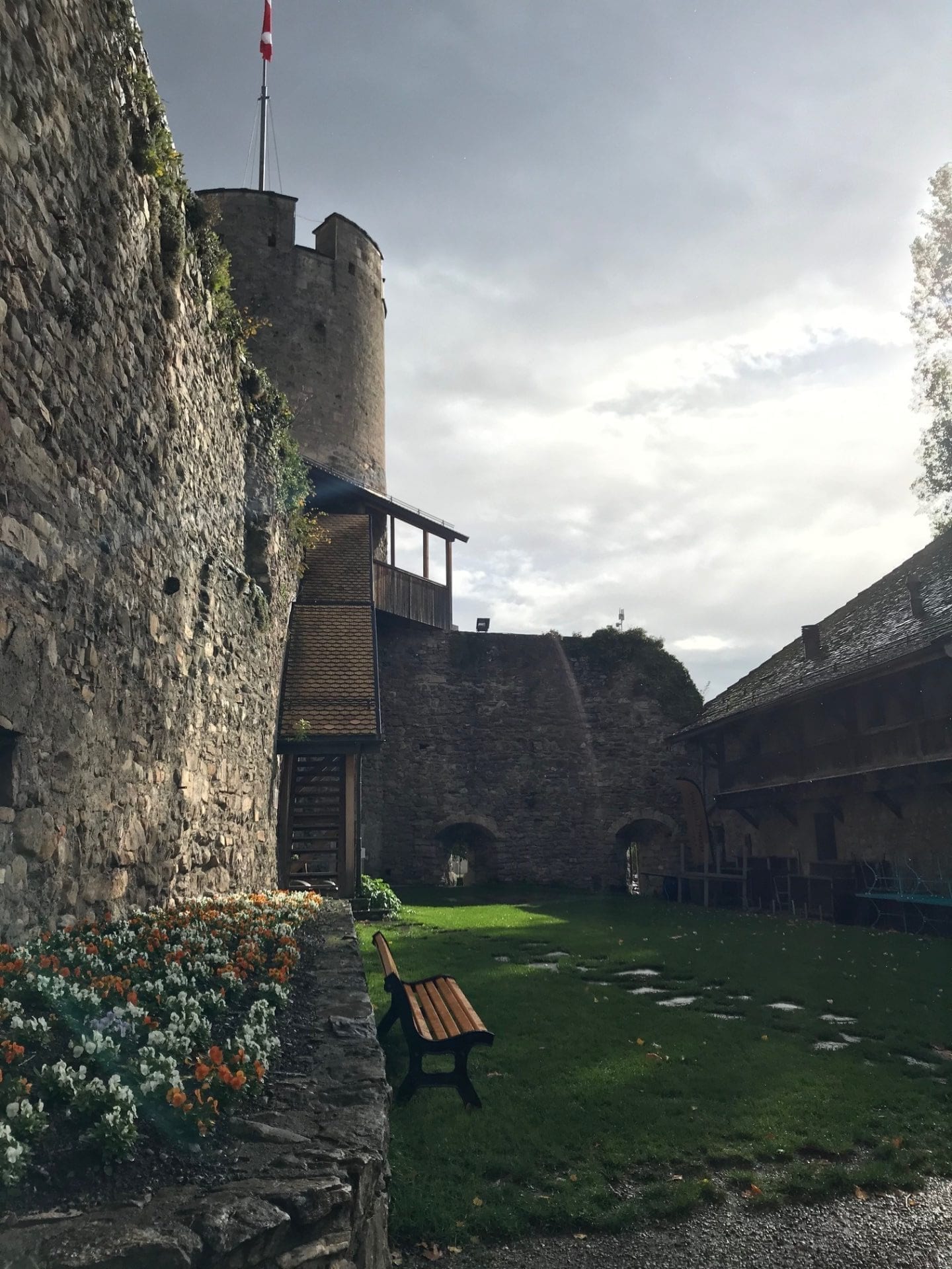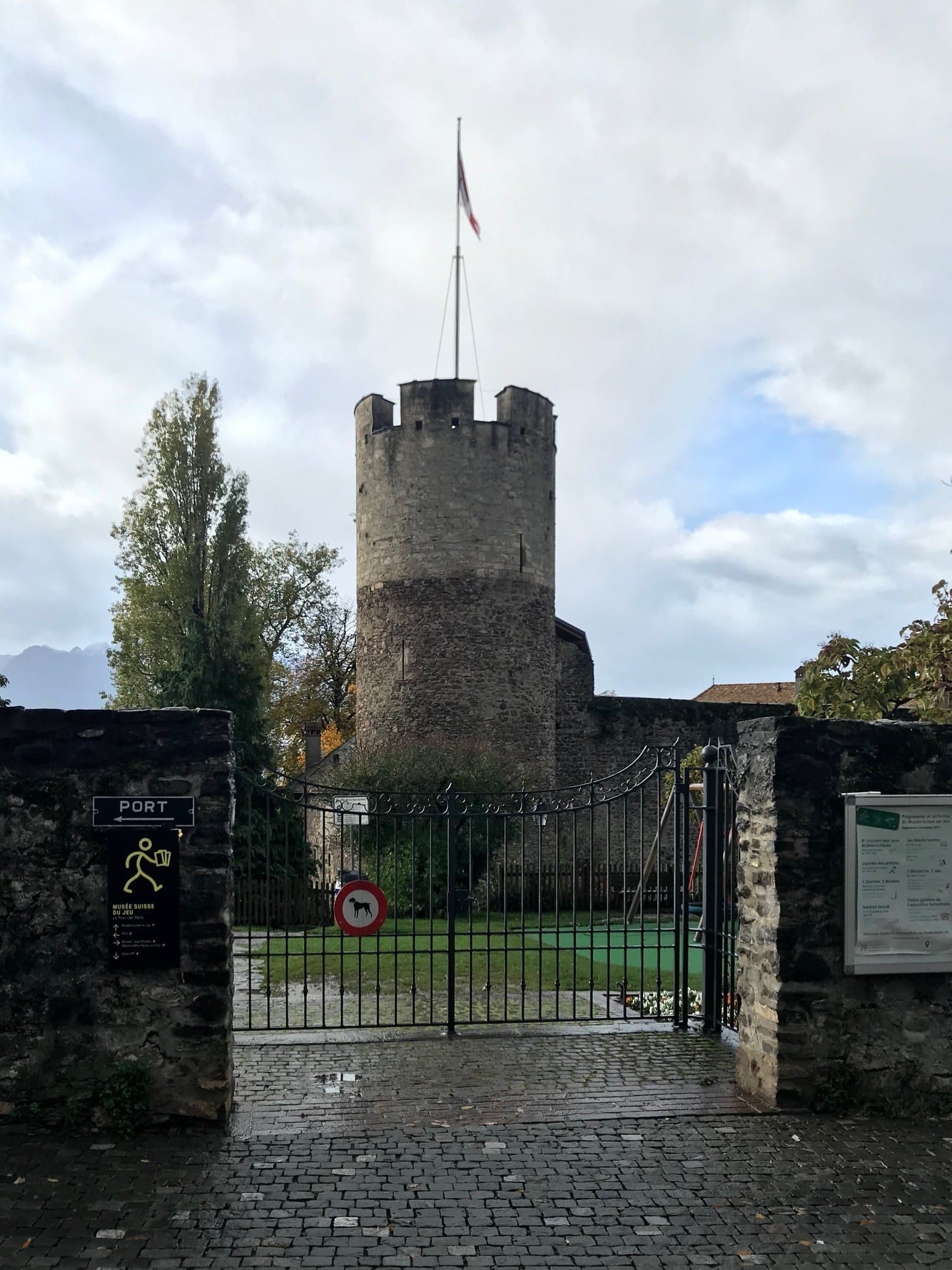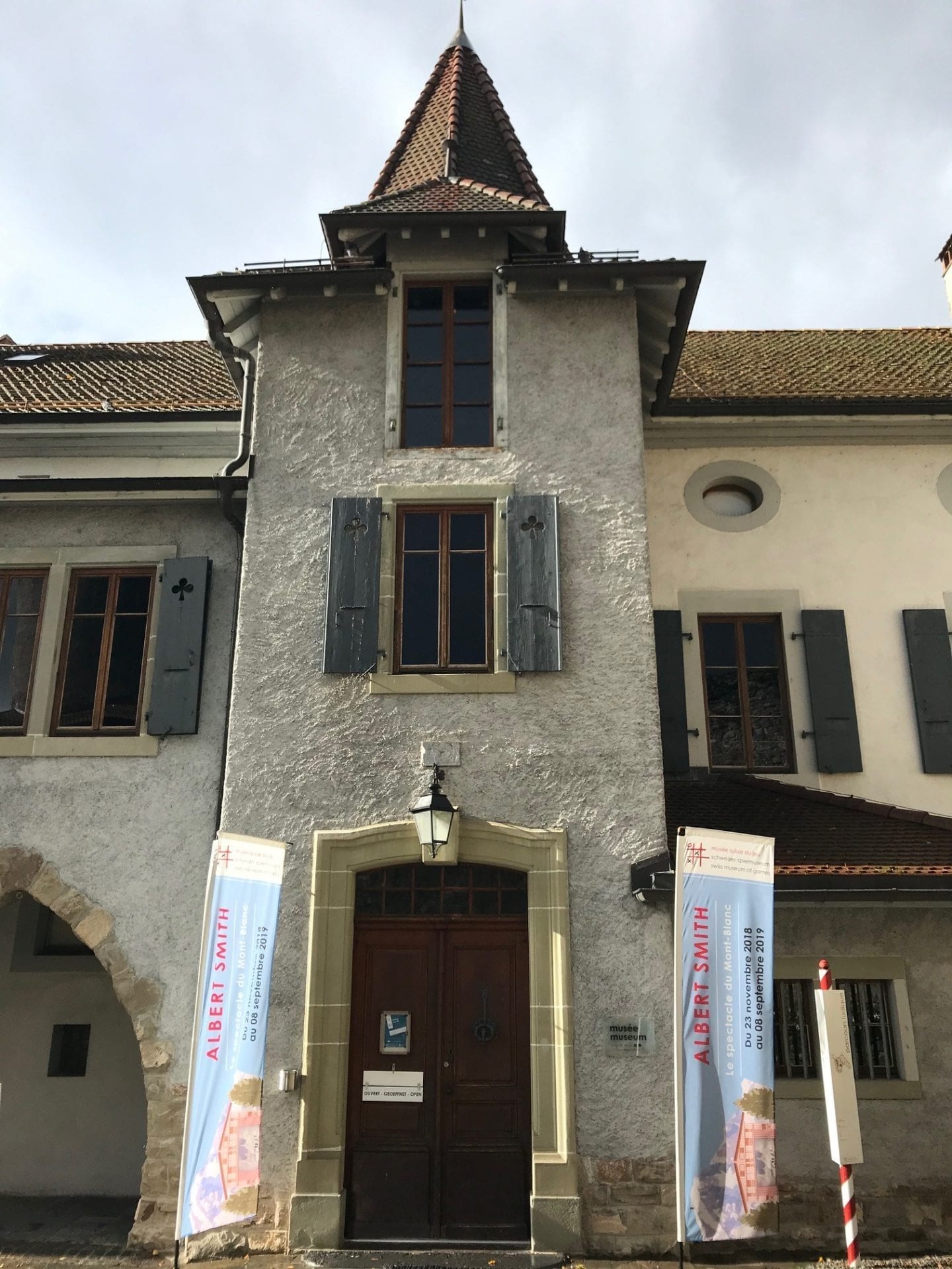 En arrivant au MusĂ©e Suisse du Jeu qui se situe au bord du lac, on dĂ©couvre tout d’abord sa muraille et ses tours. Les jardins sont amĂ©nagĂ©s avec une place de jeu et un parcours ludique qui permet de se mettre en bouche et de profiter de l’extĂ©rieur si le temps le permet. Malheureusement, ce ne fut pas notre cas vu la tempĂȘte qu’on a dĂ» essuyer. Dans la cour, on dĂ©couvre la magnifique bĂątisse blanche qui habite le musĂ©e. On a Ă©galement la possibilitĂ© de grimper en haut d’une des tours, quand elle est ouverte, pour profiter d’une magnifique vue sur le lac.