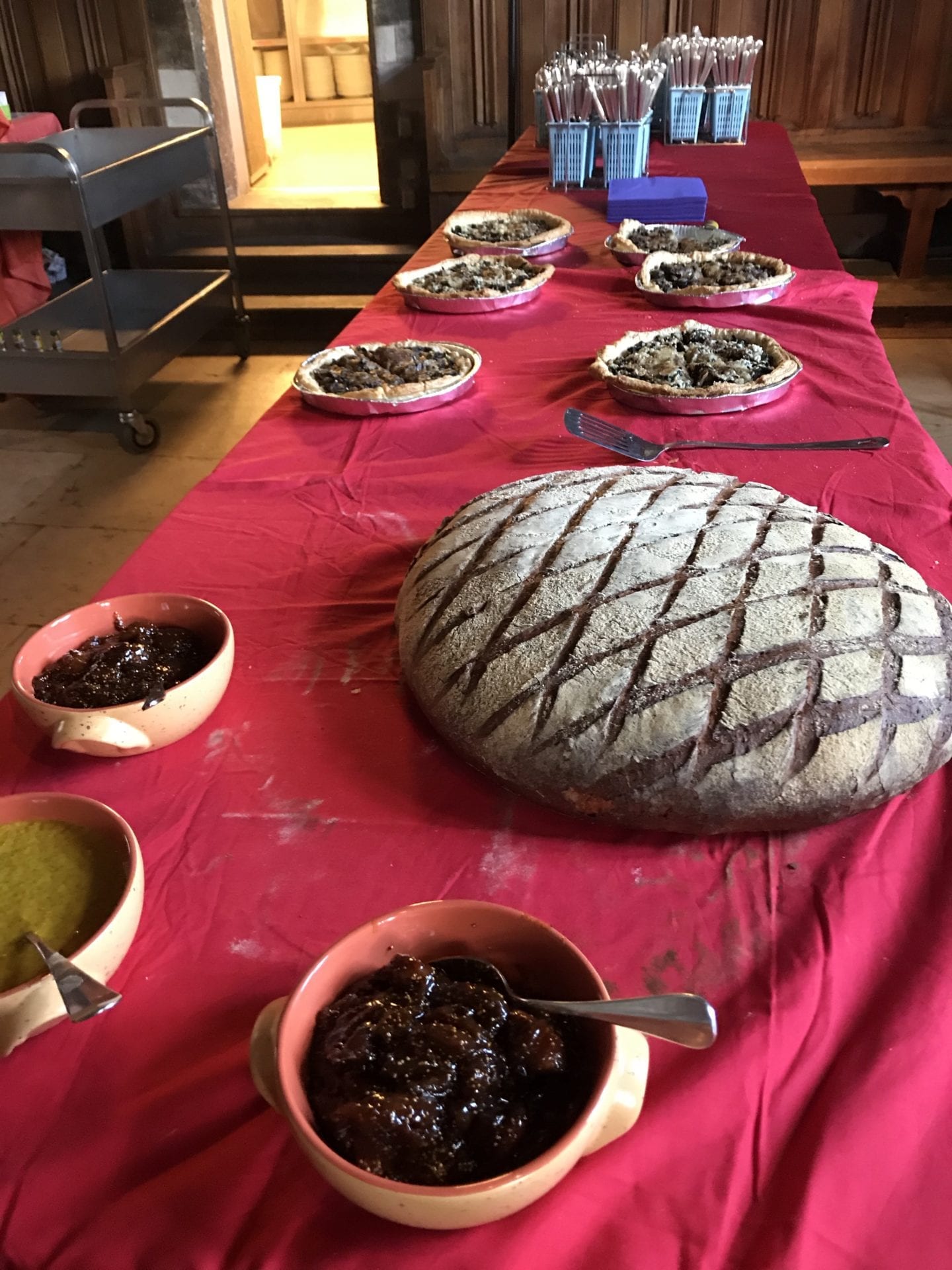 La grande salle 26 a été aménagée en réfectoire, mais il était un peu tôt pour boire une soupe à l’oignon ou manger une pâsté de champignons.
