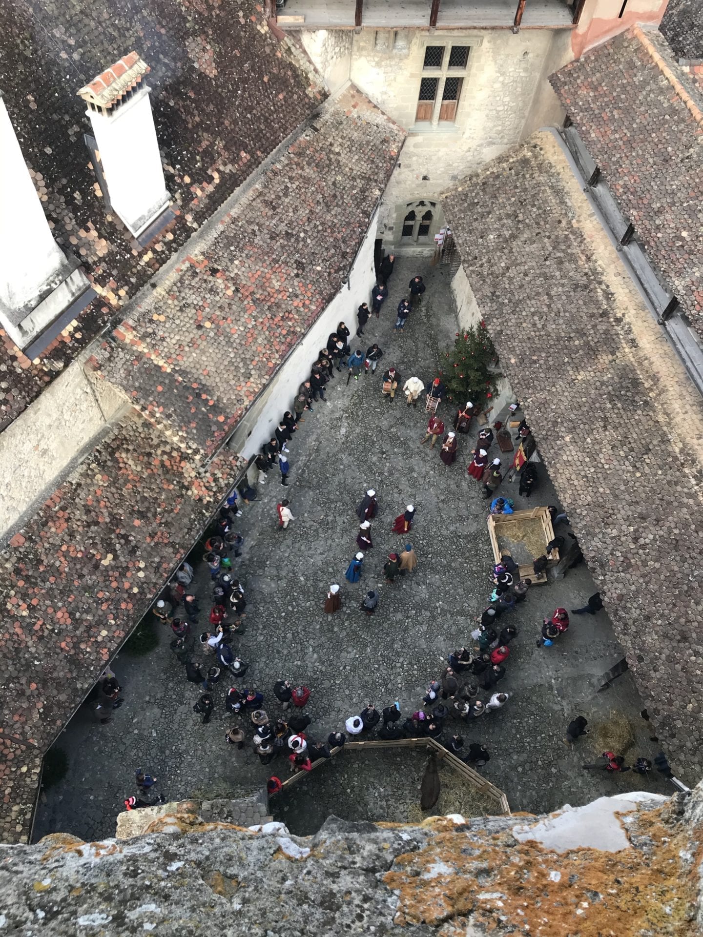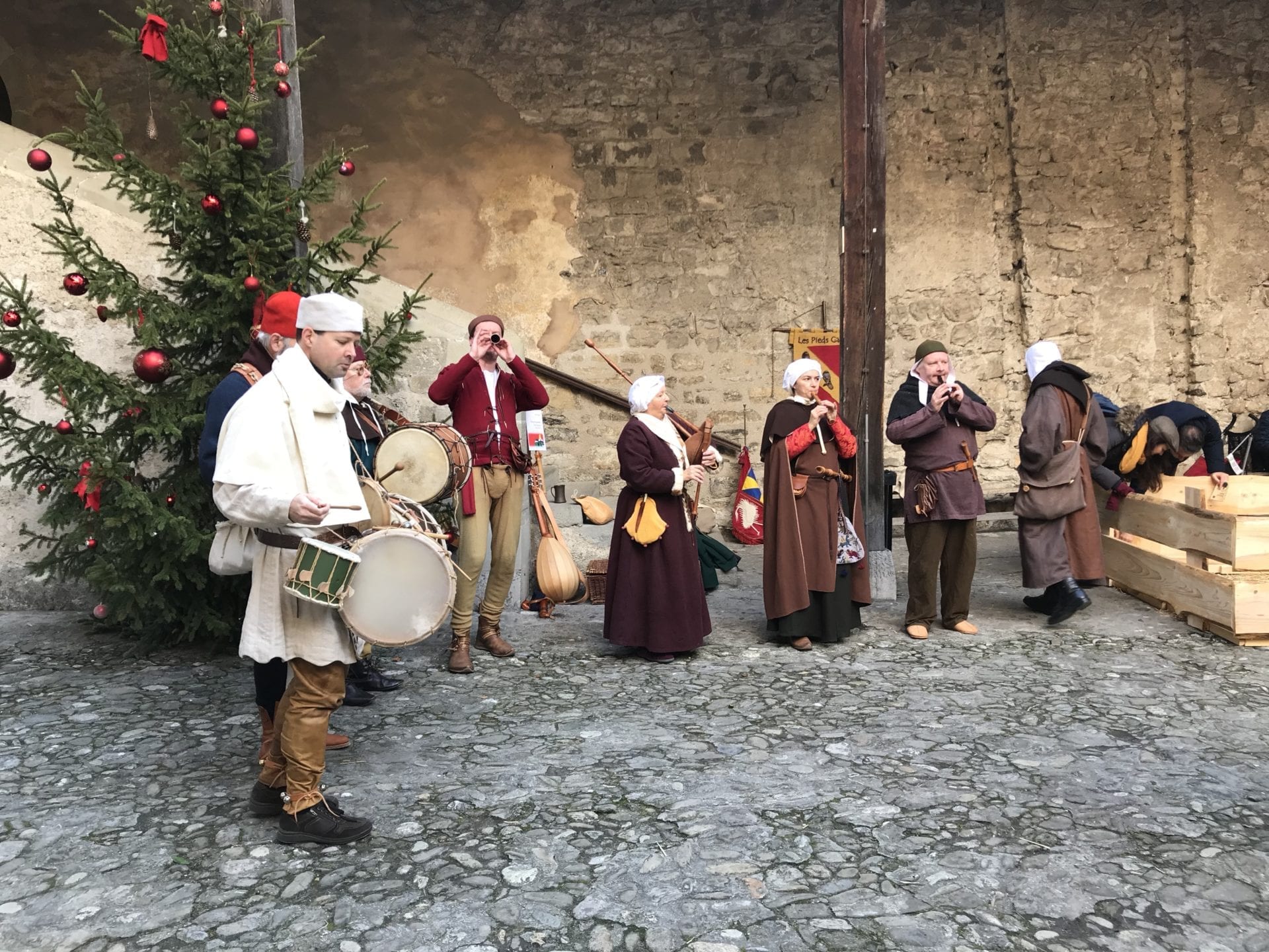 A peine entrés dans l’enceinte du château que nous entendons de la musique retentir. Petit Poulet, curieux, cours en direction de la mélodie provenant de la cour 3.
