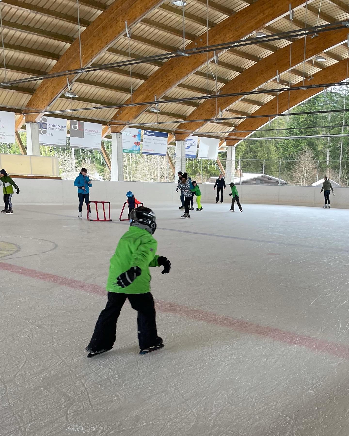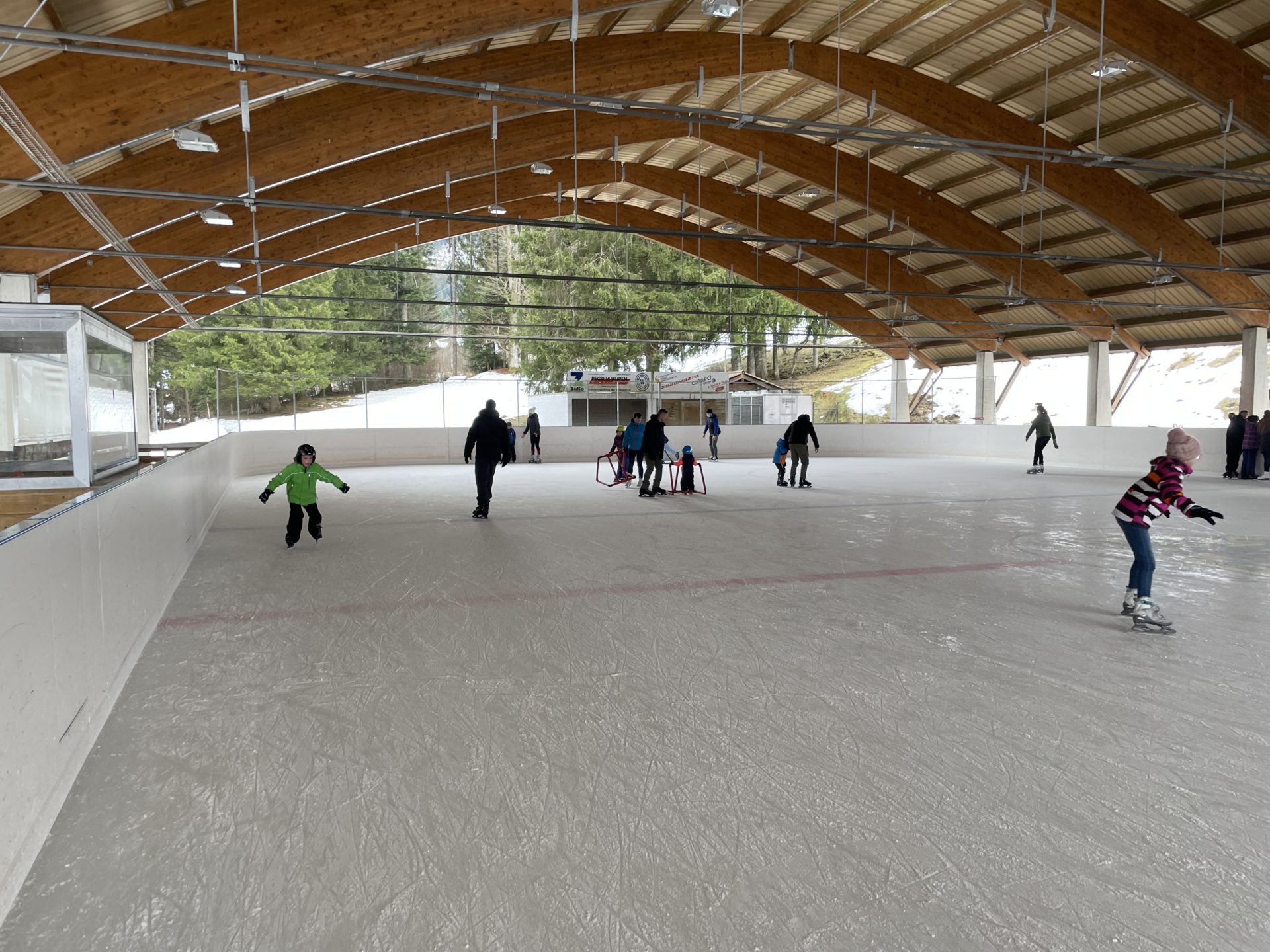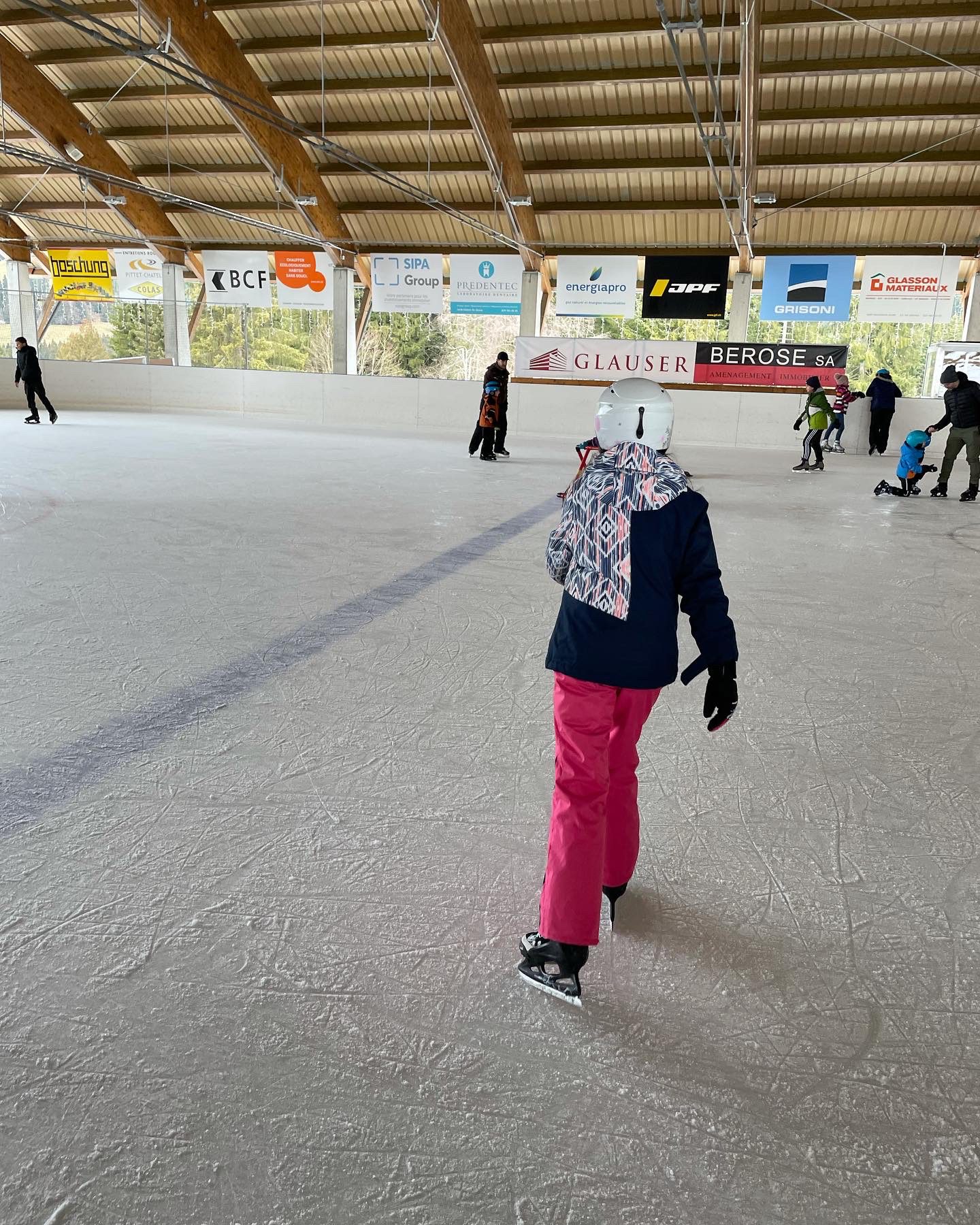 Une fois arrivĂ©s aux Paccots, nous avons trouvĂ© facilement une place de parc en dessous de la patinoire. Nous sommes tout dâabord passĂ©s par lâaccueil afin de payer nos entrĂ©es et de louer des patins.