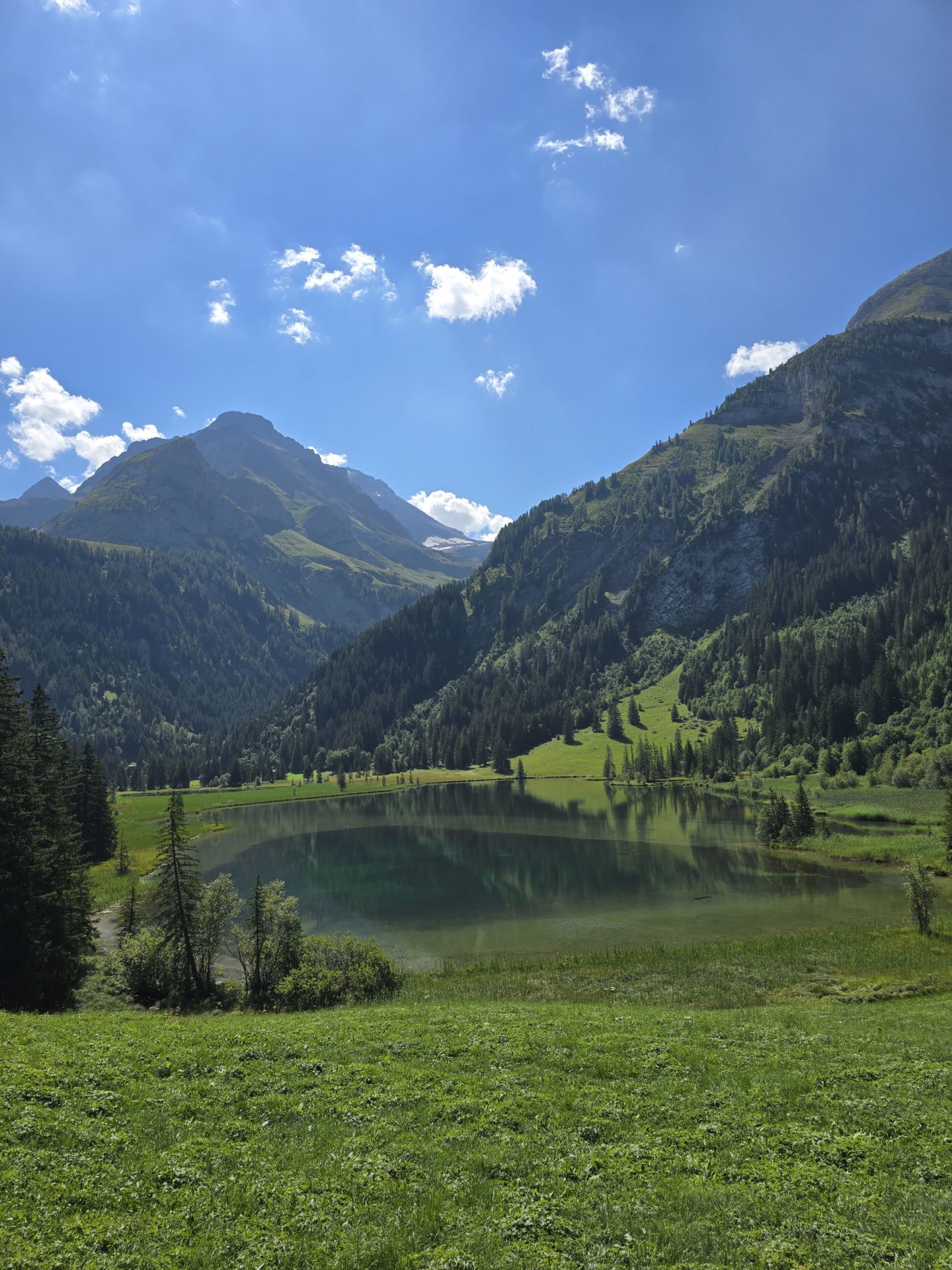Nous partons Ă la dĂ©couverte du Lauenensee. Il se cache sur les hauteurs de Gstaad. Il est possible de sây rendre en bus ou alors en voiture privĂ©e, ce que nous avons fait. Un grand parking se trouve Ă proximitĂ© du lac et des dĂ©buts des randonnĂ©es. Il faut compter environ 8-10 CHF la journĂ©e pour se stationner Ă cet endroit. Il nây a pas dâautres parkings dans les environs donc les autres options moins onĂ©reuses sont soit de grimper Ă pied depuis le village de Lauenen, soit dâemprunter le bus (pas certaine que le billet soit vraiment moins cher).
