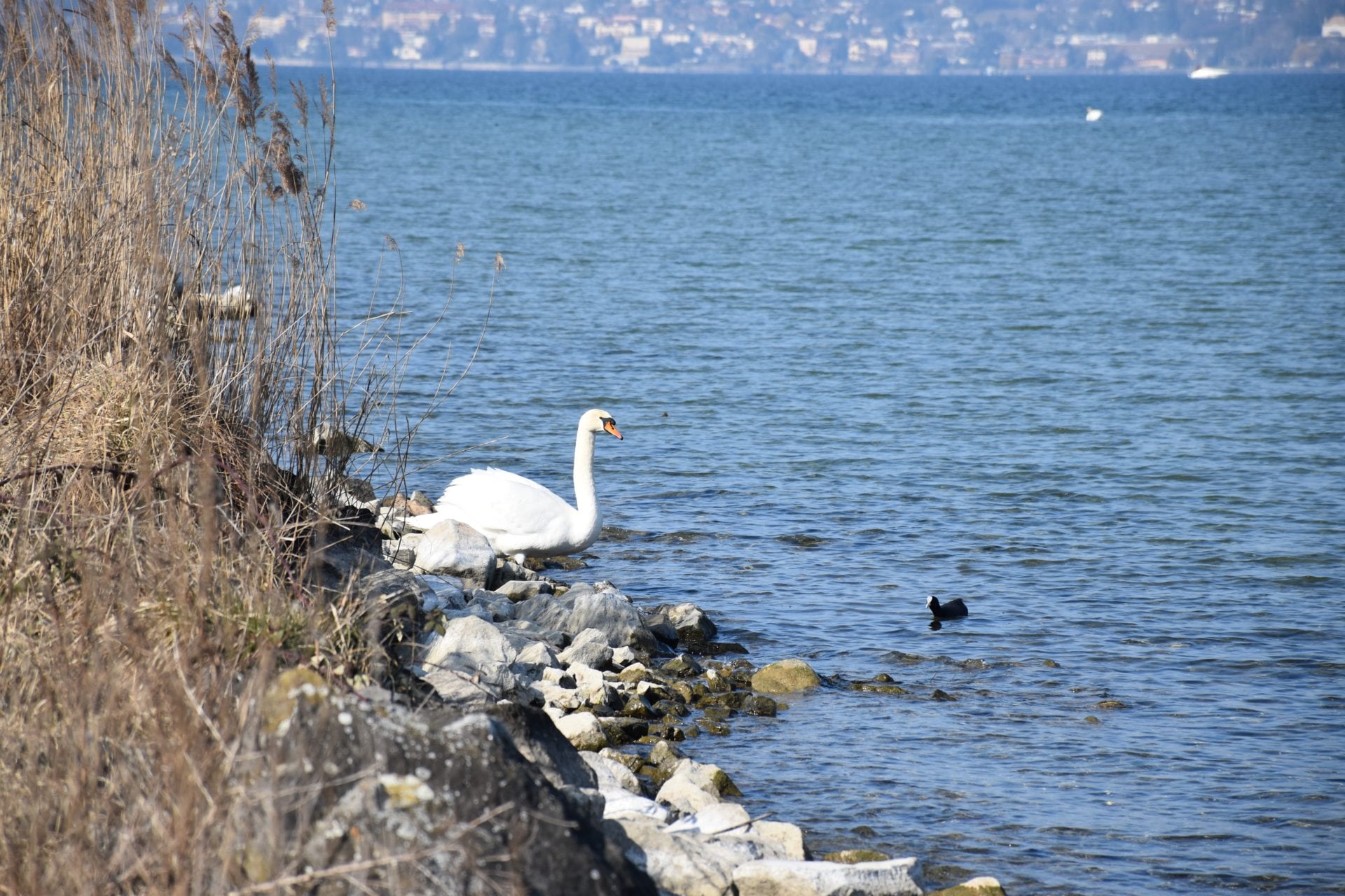 Nous avons suivi la jetée, bordant le grand canal en direction du lac. A cet endroit une multitude des canards se sont laissés facilement observés. Puis en longeant le grand canal en sens inverse, il est possible de le traverser et de continuer la balade dans la réserve en direction du Bouveret.