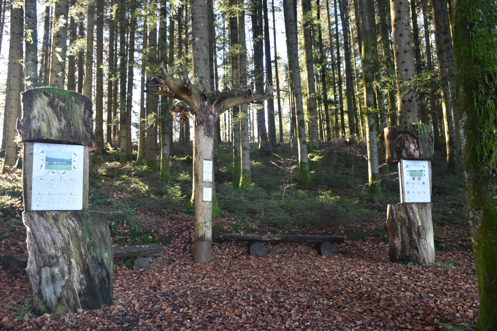 Tout au long du parcours des panneaux informatifs nous permettent dâapprendre pleins de choses intĂ©ressantes sur la vie des oiseaux vivant dans les bois ainsi que sur le rĂŽle et lâimportance des arbres dans la forĂȘt et lâĂ©cosystĂšme.