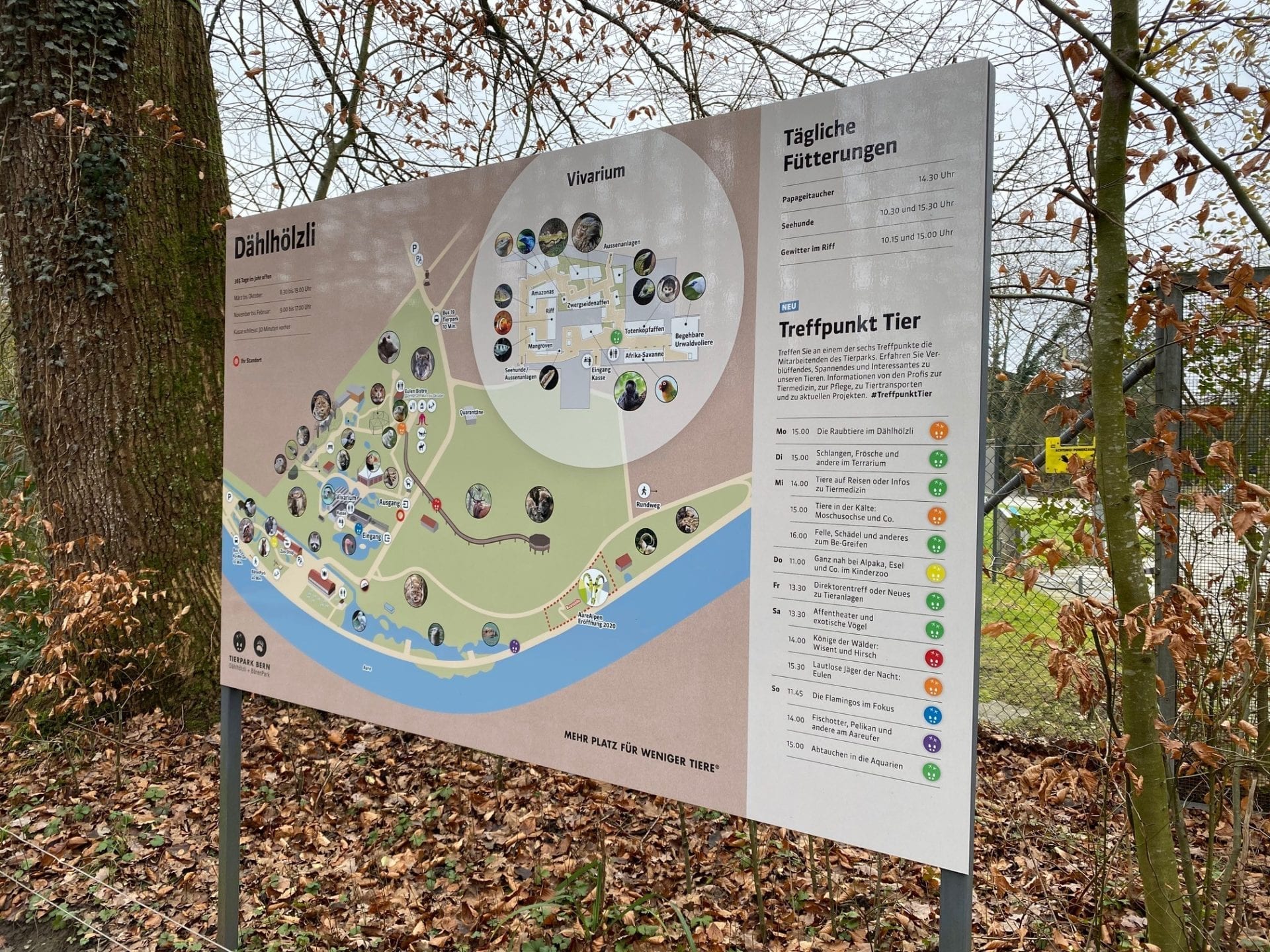 Devant chaque enclos, on peut lire sur un panneau s’il y a eu des naissances rĂ©cemment et toutes autres informations qui pourraient intĂ©resser les visiteurs.