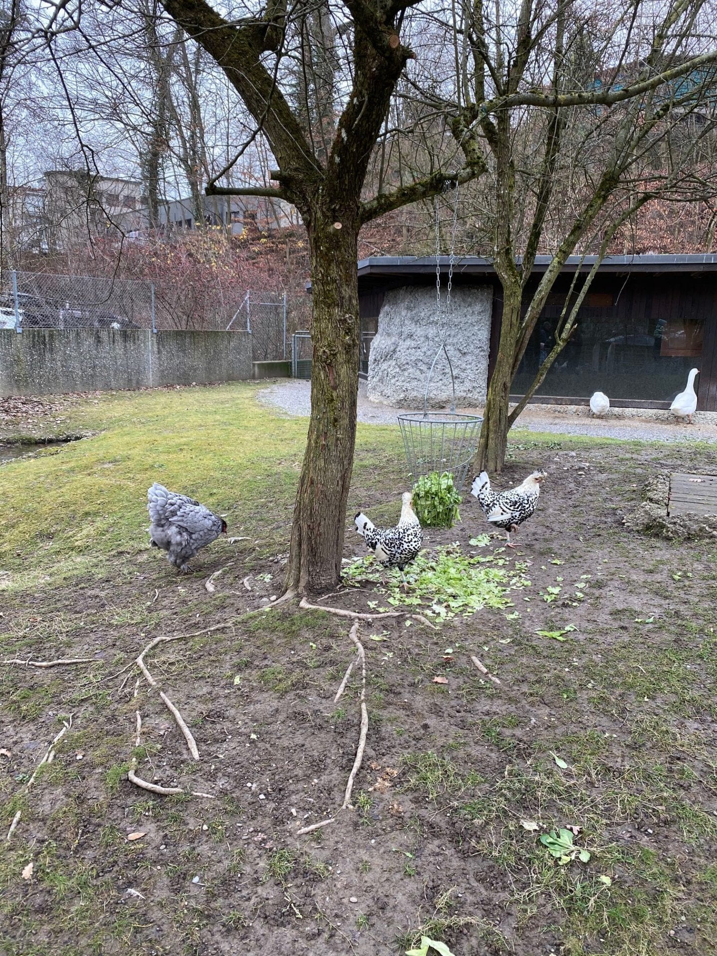 Tout en bas, on a retrouvé une place de jeu. Mais nous avons passé notre tour et sommes entrés directement dans la ferme du zoo. Les enfants peuvent y caresser les chÚvres ou encore admirer les ùnes, les lamas et des poules rigolotes pleines de plumes ébouriffées.