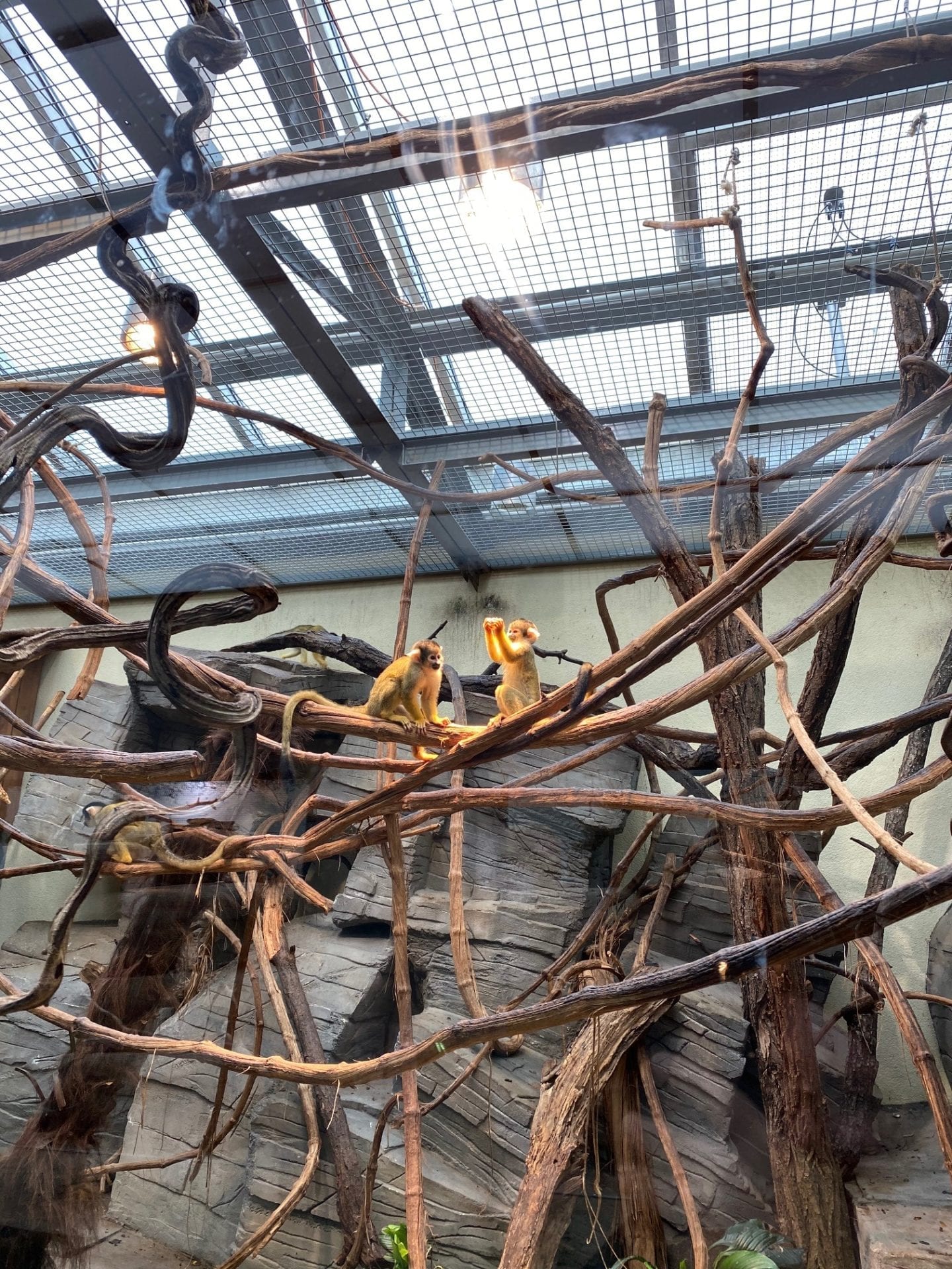 En entrant, on tombe directement sur les saĂŻmiris et on se laisse facilement hypnotiser de longues minutes par ces petits singes espiĂšgles. Nous avons continuĂ© ensuite notre visite dans le vivarium oĂč nous avons pu observer un magnifique camĂ©lĂ©on, d’autres singes, une multitude de poissons et de reptiles.