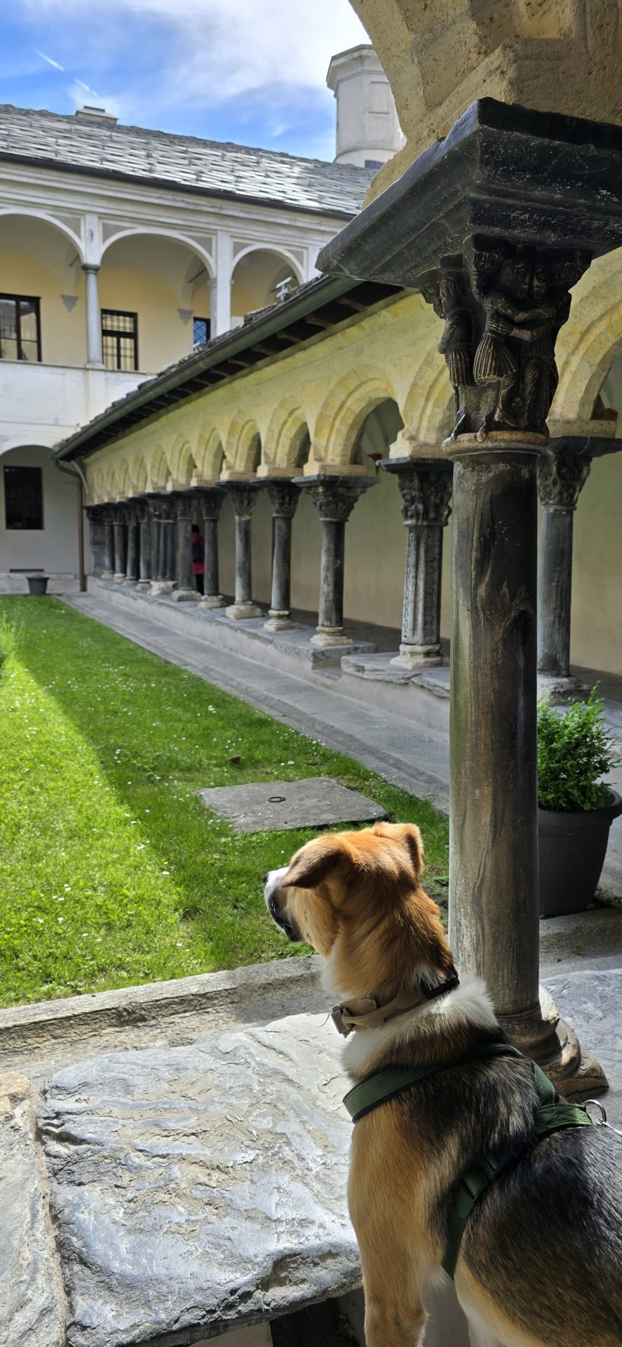 Autre bijou historique de la ville d’Aoste : le cloĂźtre de Saint-Ours. Cet Ă©difice mĂ©diĂ©val a Ă©tĂ© construit dans les annĂ©es 1130 et aujourd’hui encore, les sculptures des chapiteaux prĂ©sentent un Ă©tat de conservation exceptionnel. Les dessins sont encore parfaitement visibles, ils racontent l’histoire de la Bible, mais aussi de la vie de Saint Ours. Ce site dĂ©gage vraiment quelque chose de particulier, je vous conseille vivement de le dĂ©couvrir. Vous allez immĂ©diatement mesurer pourquoi cet endroit constitue un tĂ©moignage exceptionnel du patrimoine historique italien. Le cloĂźtre fait partie de l’Abbaye de Saint-Ours. Il est Ă©galement possible de visiter l’Ă©glise juste Ă  cĂŽtĂ©, elle aussi, pleine de richesses. On a vraiment beaucoup apprĂ©ciĂ© cet endroit qui dĂ©gage une aura pleine de quiĂ©tude.