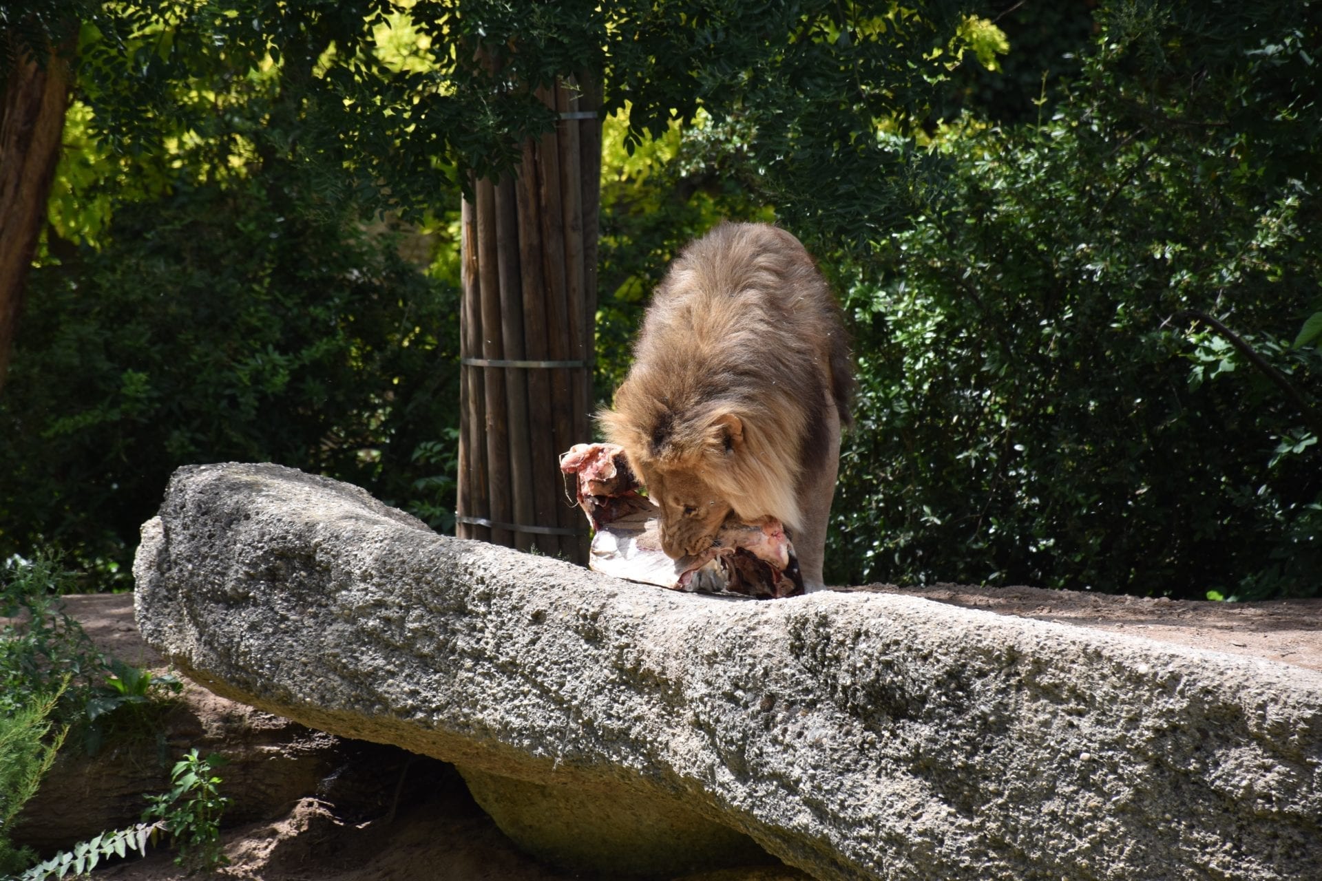 Puis nous nous sommes dirigĂ©s vers les Ă©lĂ©phants, pour le plus grand bonheur de Lutin5. Et ensuite nous avons continuĂ©s dans la direction des lions, tout en admirant d’autre animaux sur notre chemin. Les allĂ©es du zoo sont agrĂ©ablement amĂ©nagĂ©es et il fait bon y flĂąner. ArrivĂ©e Ă  l’enclos des lions nous avons eu la grande chance de pouvoir assister au repas des fauves.